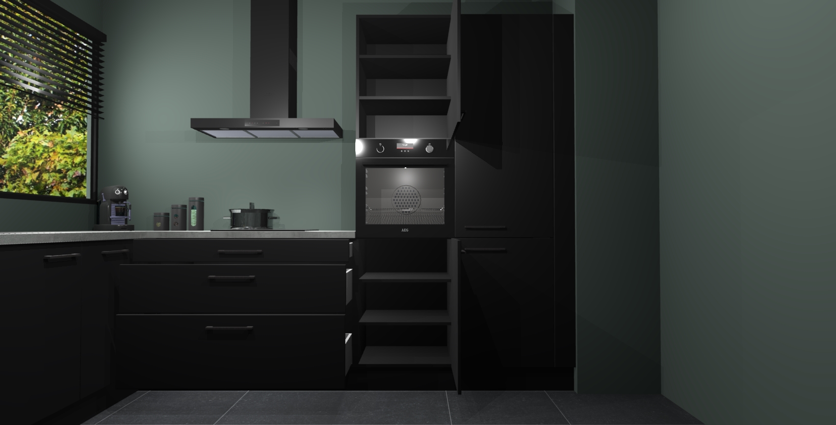 Met een modern, tijdloos design en ruime opslagruimte, zult u zich in no-time thuis voelen in uw nieuwe keuken. Uw leven wordt eenvoudiger met de soft-close deuren die voor het ultieme stille comfort zorgen - geen geluid dat u stoort terwijl u kookt. Ook is de keuken voorzien van 5 ingebouwde apparaten: een oven, inductie kookplaat, afzuigkap, vaatwasser en koelkast. Deze kunnen gemakkelijk na bestelling worden bijgewerkt naar AEG - waardoor uw luxe ervaring compleet is.
