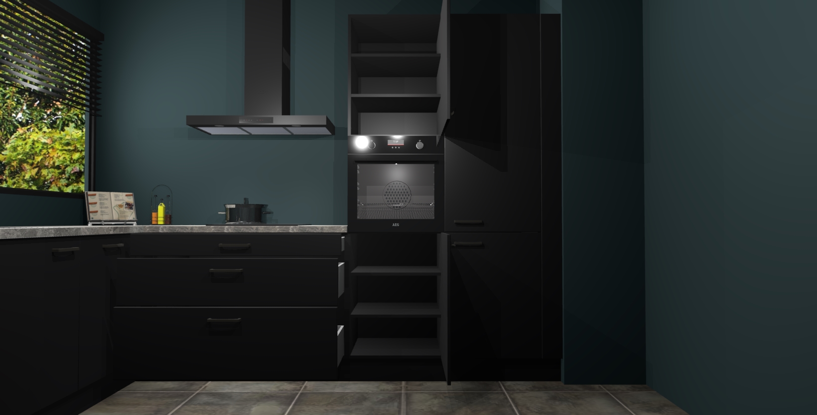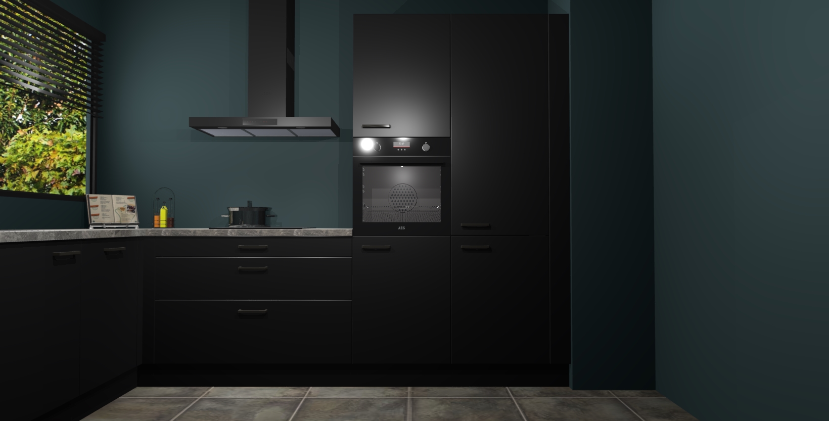 Met een modern, tijdloos design en ruime opslagruimte, zult u zich in no-time thuis voelen in uw nieuwe keuken. Uw leven wordt eenvoudiger met de soft-close deuren die voor het ultieme stille comfort zorgen - geen geluid dat u stoort terwijl u kookt. Ook is de keuken voorzien van 5 ingebouwde apparaten: een oven, inductie kookplaat, afzuigkap, vaatwasser en koelkast. Deze kunnen gemakkelijk na bestelling worden bijgewerkt naar AEG - waardoor uw luxe ervaring compleet is.
