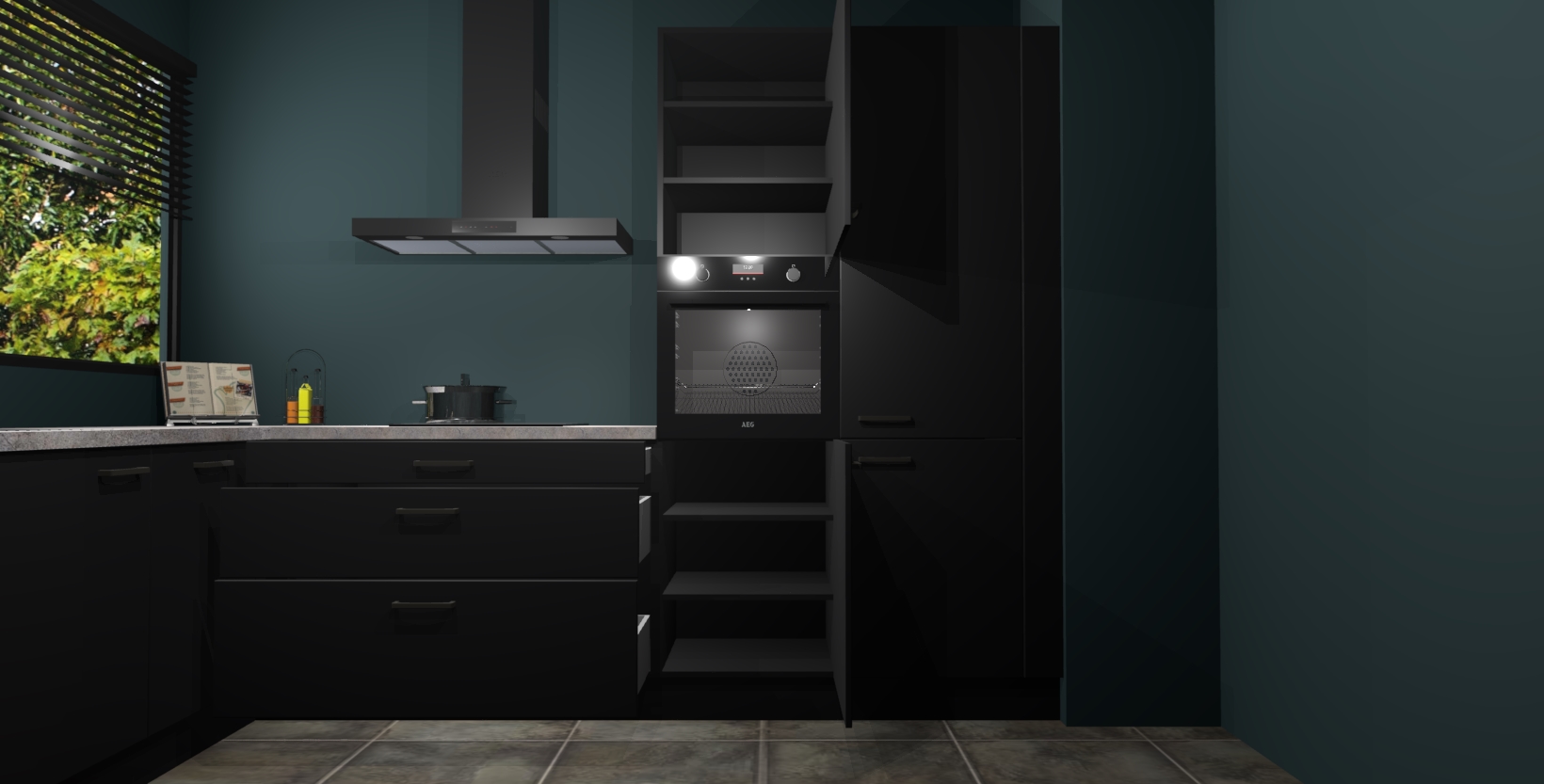 Met een modern, tijdloos design en ruime opslagruimte, zult u zich in no-time thuis voelen in uw nieuwe keuken. Uw leven wordt eenvoudiger met de soft-close deuren die voor het ultieme stille comfort zorgen - geen geluid dat u stoort terwijl u kookt. Ook is de keuken voorzien van 5 ingebouwde apparaten: een oven, inductie kookplaat, afzuigkap, vaatwasser en koelkast. Deze kunnen gemakkelijk na bestelling worden bijgewerkt naar AEG - waardoor uw luxe ervaring compleet is.
