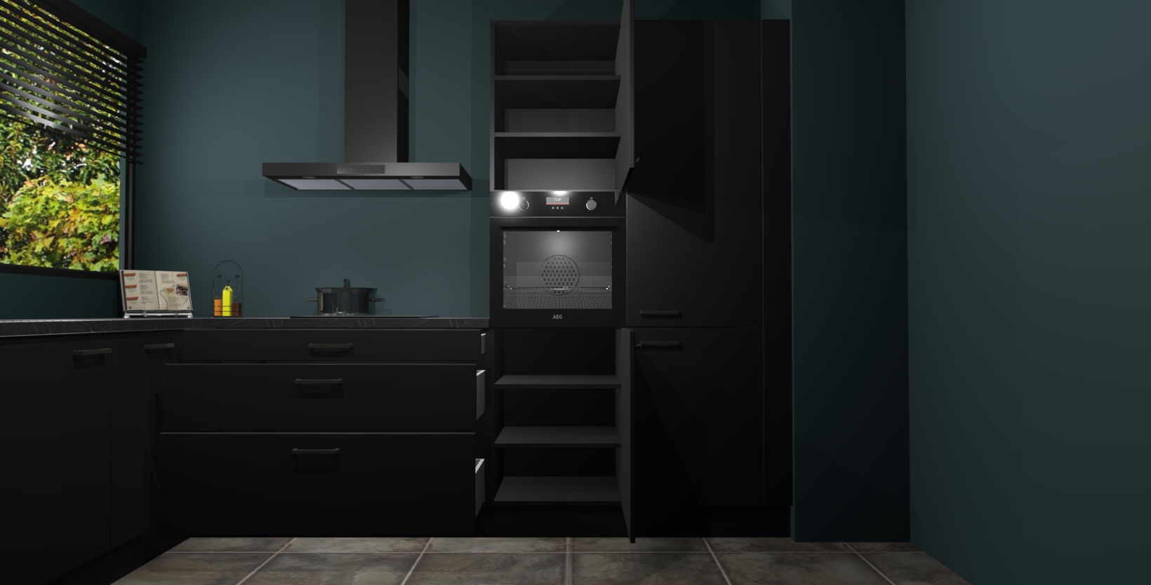 Met een modern, tijdloos design en ruime opslagruimte, zult u zich in no-time thuis voelen in uw nieuwe keuken. Uw leven wordt eenvoudiger met de soft-close deuren die voor het ultieme stille comfort zorgen - geen geluid dat u stoort terwijl u kookt. Ook is de keuken voorzien van 5 ingebouwde apparaten: een oven, inductie kookplaat, afzuigkap, vaatwasser en koelkast. Deze kunnen gemakkelijk na bestelling worden bijgewerkt naar AEG - waardoor uw luxe ervaring compleet is.