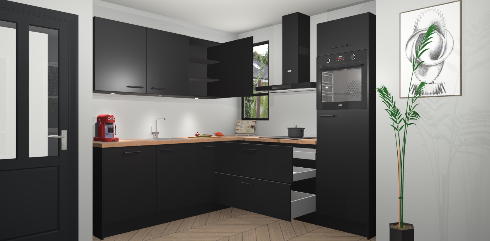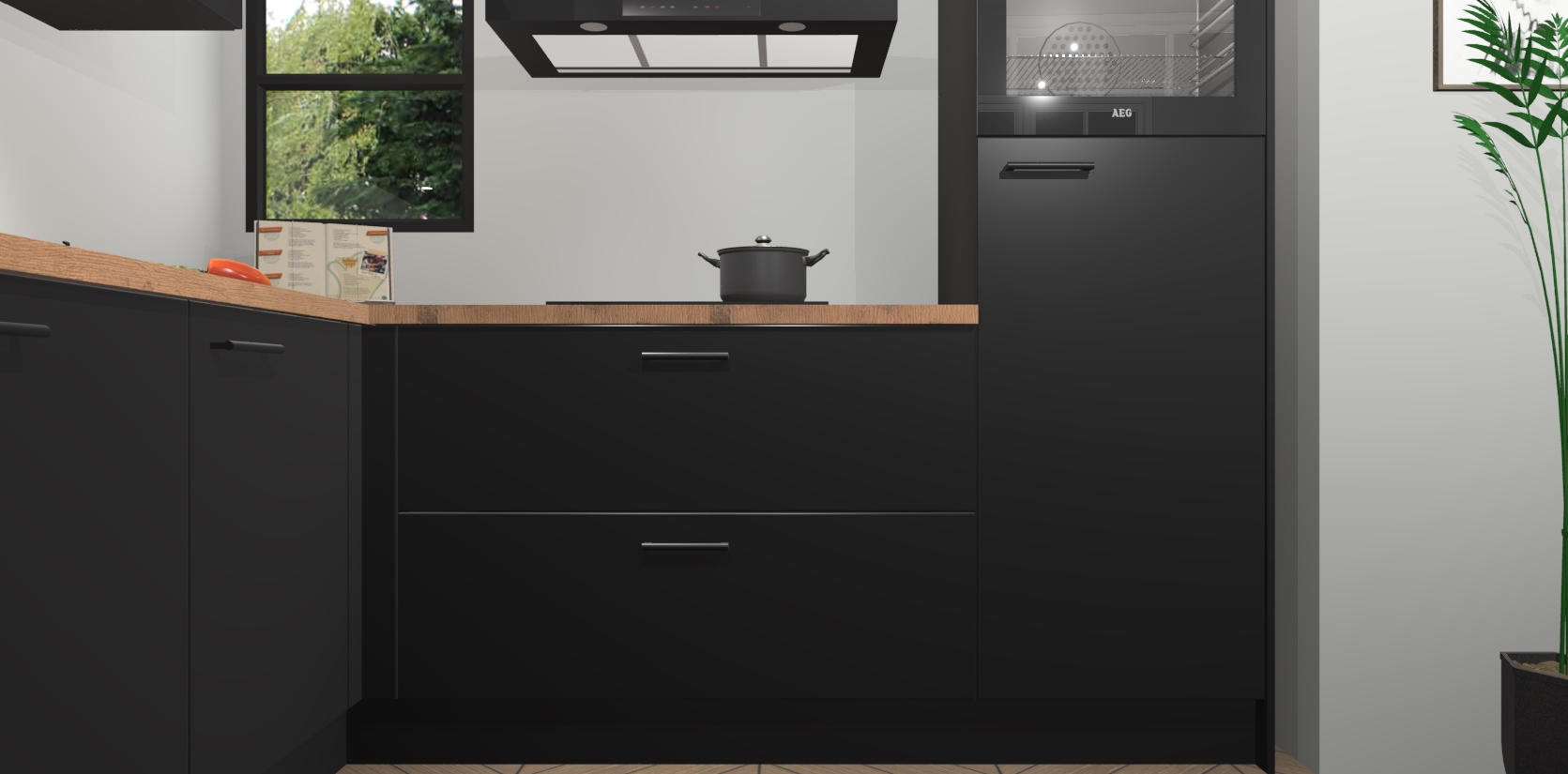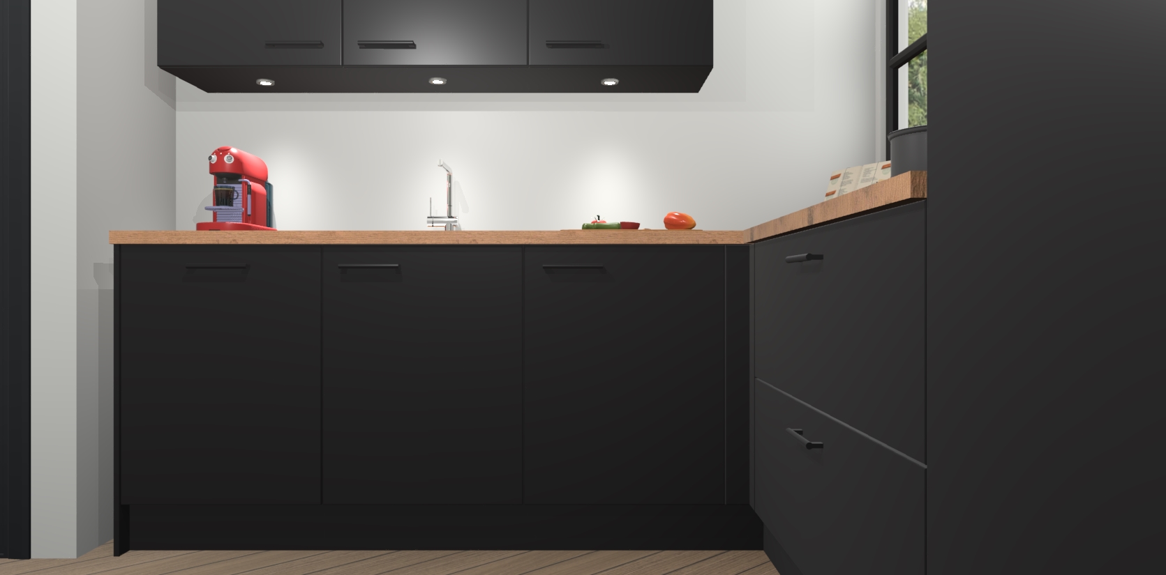 Inclusief plinten, stelpoten en werkblad