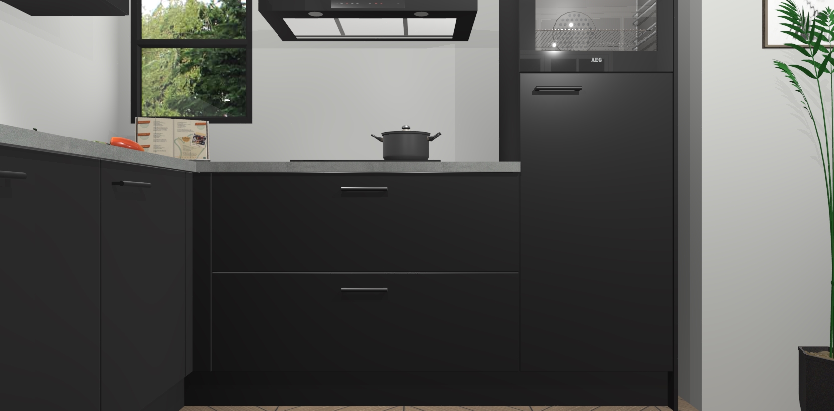 Inclusief plinten, stelpoten en werkblad