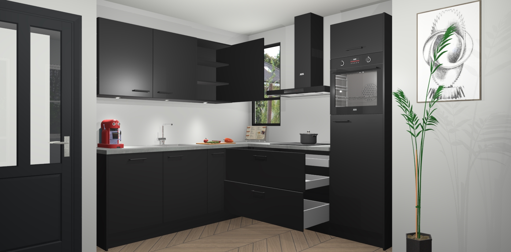 Als extra werd de prijs zo laag mogelijk vastgesteld, zonder aan de kwaliteit te raken. Zo heb je gegarandeerde Duitse keukenkwaliteit waarmee je jarenlang plezier beleeft aan het ontwerp. En dat alles wordt gecombineerd met een supersnelle service van maar liefst 7 weken!
