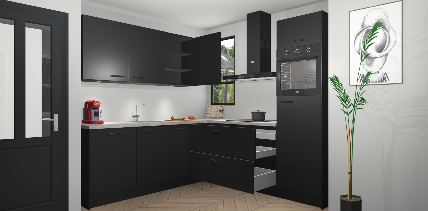 Als extra werd de prijs zo laag mogelijk vastgesteld, zonder aan de kwaliteit te raken. Zo heb je gegarandeerde Duitse keukenkwaliteit waarmee je jarenlang plezier beleeft aan het ontwerp. En dat alles wordt gecombineerd met een supersnelle service van maar liefst 7 weken!