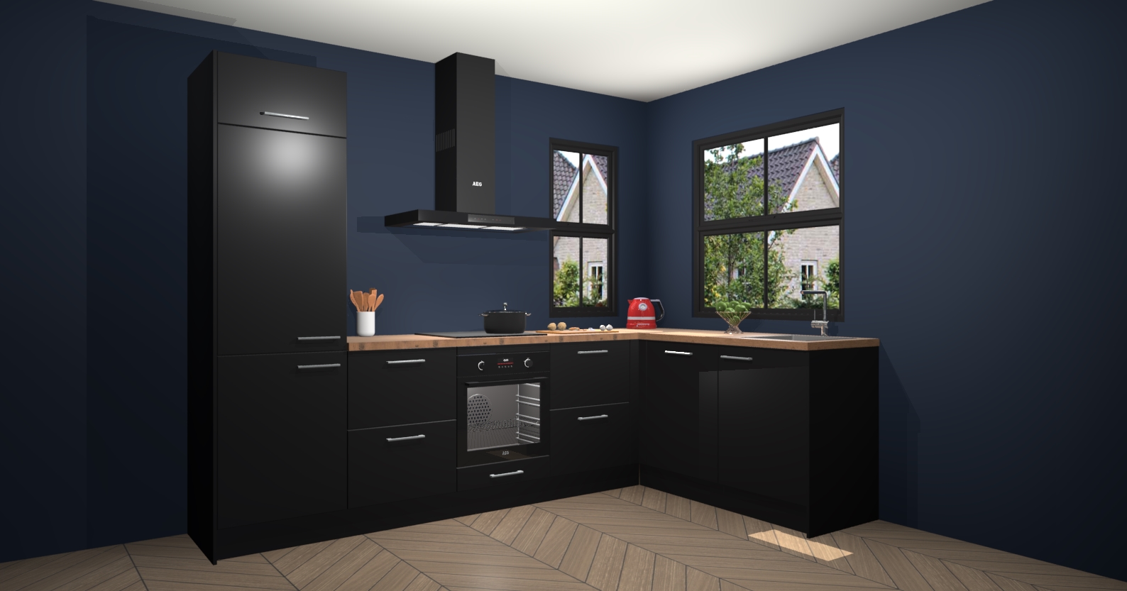 Bent u op zoek naar de perfecte keuken om in te koken? Zoek niet verder, want onze zwarte keuken Keulen 22116 is alles waar u ooit van gedroomd heeft! Deze prachtige moderne keuken straalt luxe uit, met donker gekleurde kastjes en 5 ingebouwde toestellen: een oven, inductieplaat, afzuigkap, vaatwasser en koelkast. Voor wie van meer variatie houdt, kan deze na bestelling eenvoudig upgraden naar AEG of van oven naar combimagnetron.