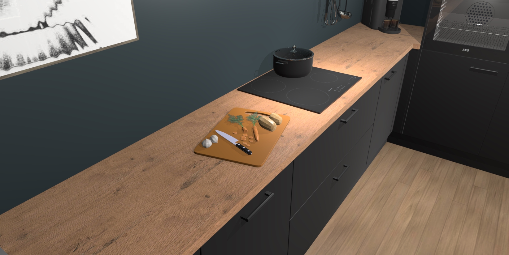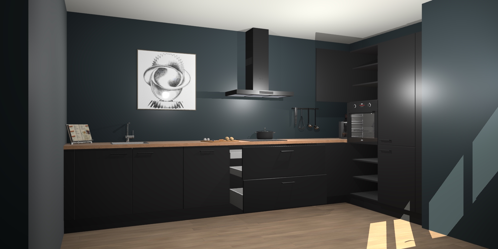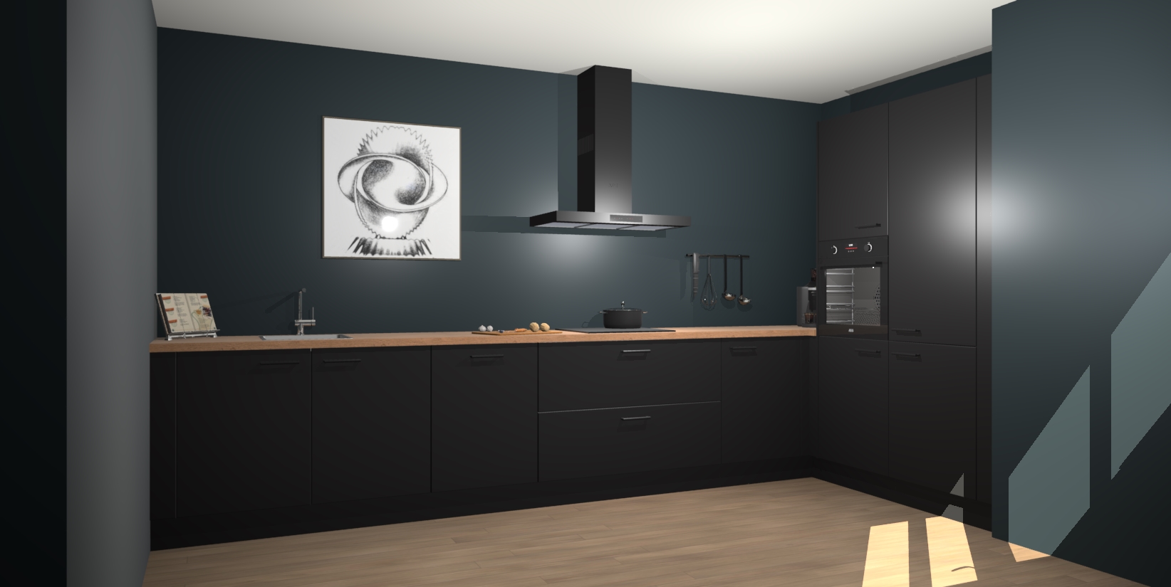 Welkom bij de Zwarte keuken Khao Lak. Deze prachtige keuken zal de komende jaren het middelpunt van de belangstelling in uw huis zijn. Uitgerust met vijf inbouwapparaten komt u nooit kookgereedschap tekort. Bovendien geeft de warme houtlook elke ruimte een uitnodigende en tijdloze uitstraling.