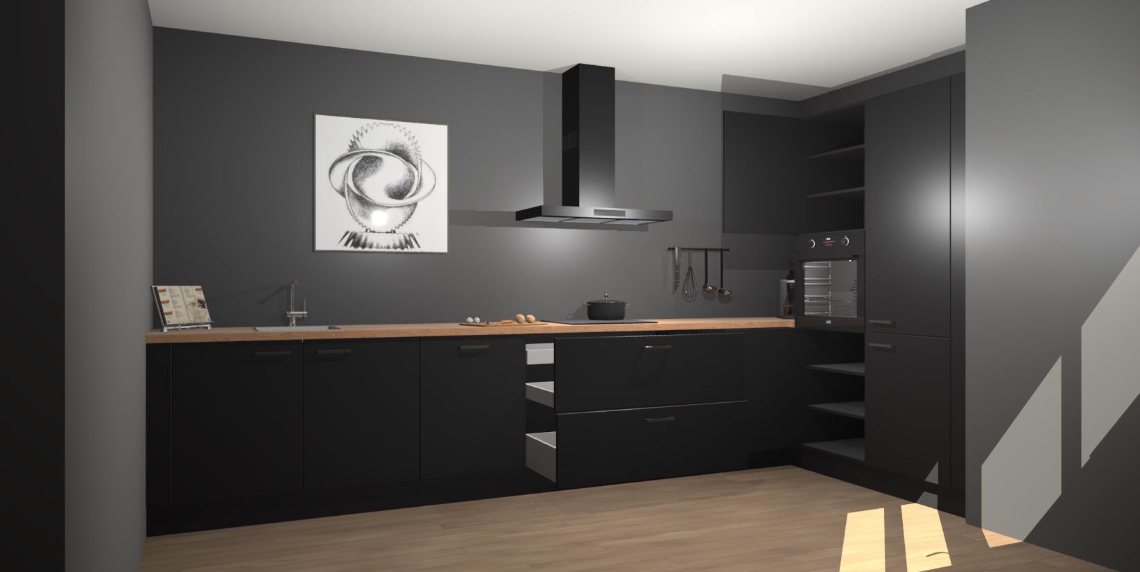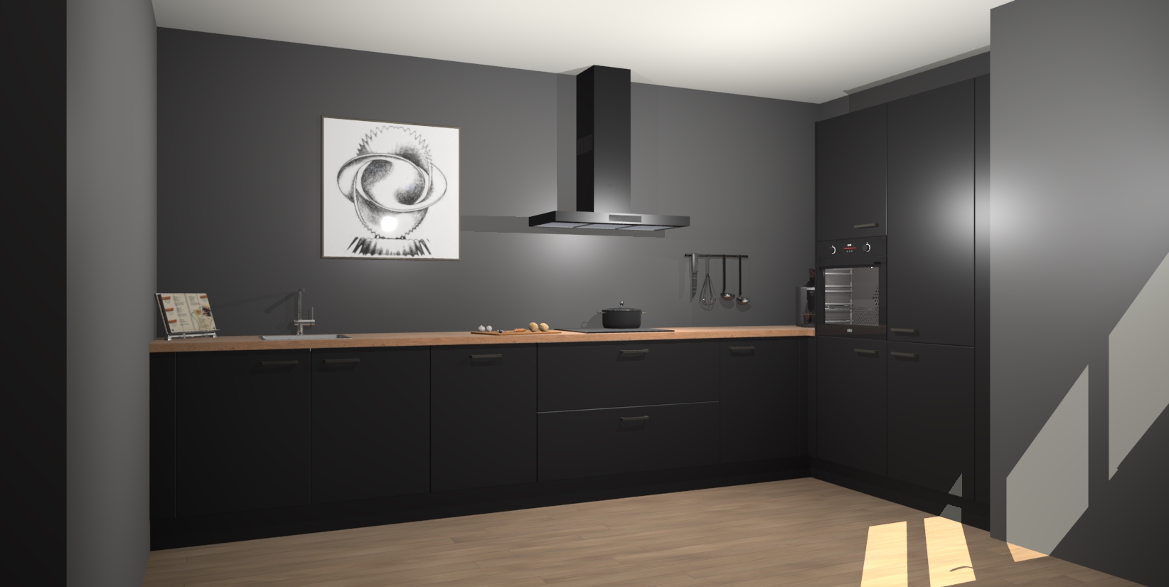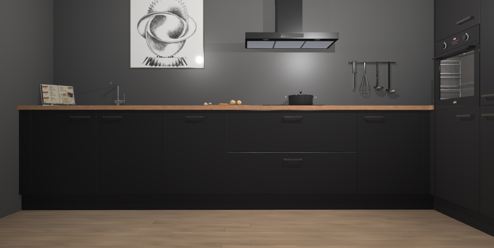 Welkom bij de Zwarte keuken Khao Lak. Deze prachtige keuken zal de komende jaren het middelpunt van de belangstelling in uw huis zijn. Uitgerust met vijf inbouwapparaten komt u nooit kookgereedschap tekort. Bovendien geeft de warme houtlook elke ruimte een uitnodigende en tijdloze uitstraling.