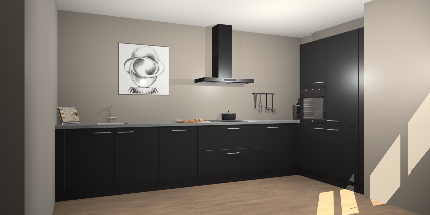 Welkom bij de Zwarte keuken Khao Lak. Deze prachtige keuken zal de komende jaren het middelpunt van de belangstelling in uw huis zijn. Uitgerust met vijf inbouwapparaten komt u nooit kookgereedschap tekort. Bovendien geeft de warme houtlook elke ruimte een uitnodigende en tijdloze uitstraling.