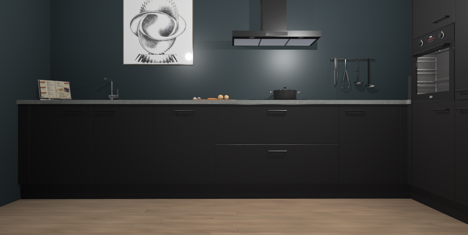 Welkom bij de Zwarte keuken Khao Lak. Deze prachtige keuken zal de komende jaren het middelpunt van de belangstelling in uw huis zijn. Uitgerust met vijf inbouwapparaten komt u nooit kookgereedschap tekort. Bovendien geeft de warme houtlook elke ruimte een uitnodigende en tijdloze uitstraling.
