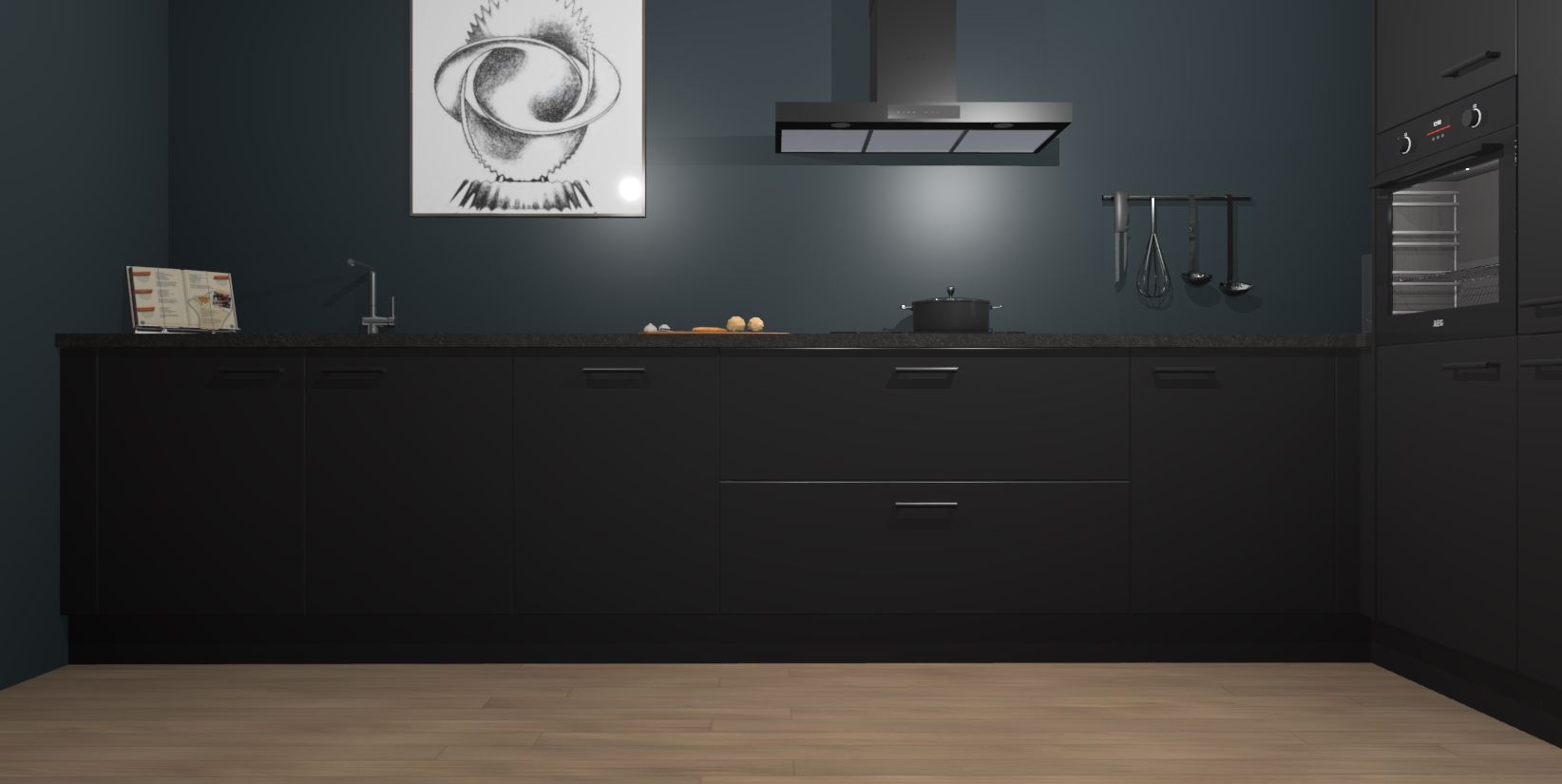 Welkom bij de Zwarte keuken Khao Lak. Deze prachtige keuken zal de komende jaren het middelpunt van de belangstelling in uw huis zijn. Uitgerust met vijf inbouwapparaten komt u nooit kookgereedschap tekort. Bovendien geeft de warme houtlook elke ruimte een uitnodigende en tijdloze uitstraling.