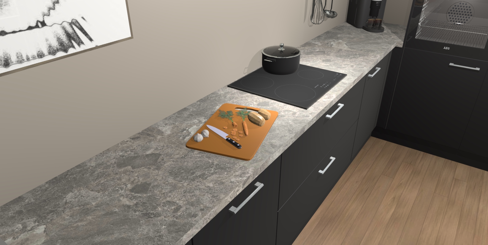 Inclusief plinten, stelpoten en werkblad