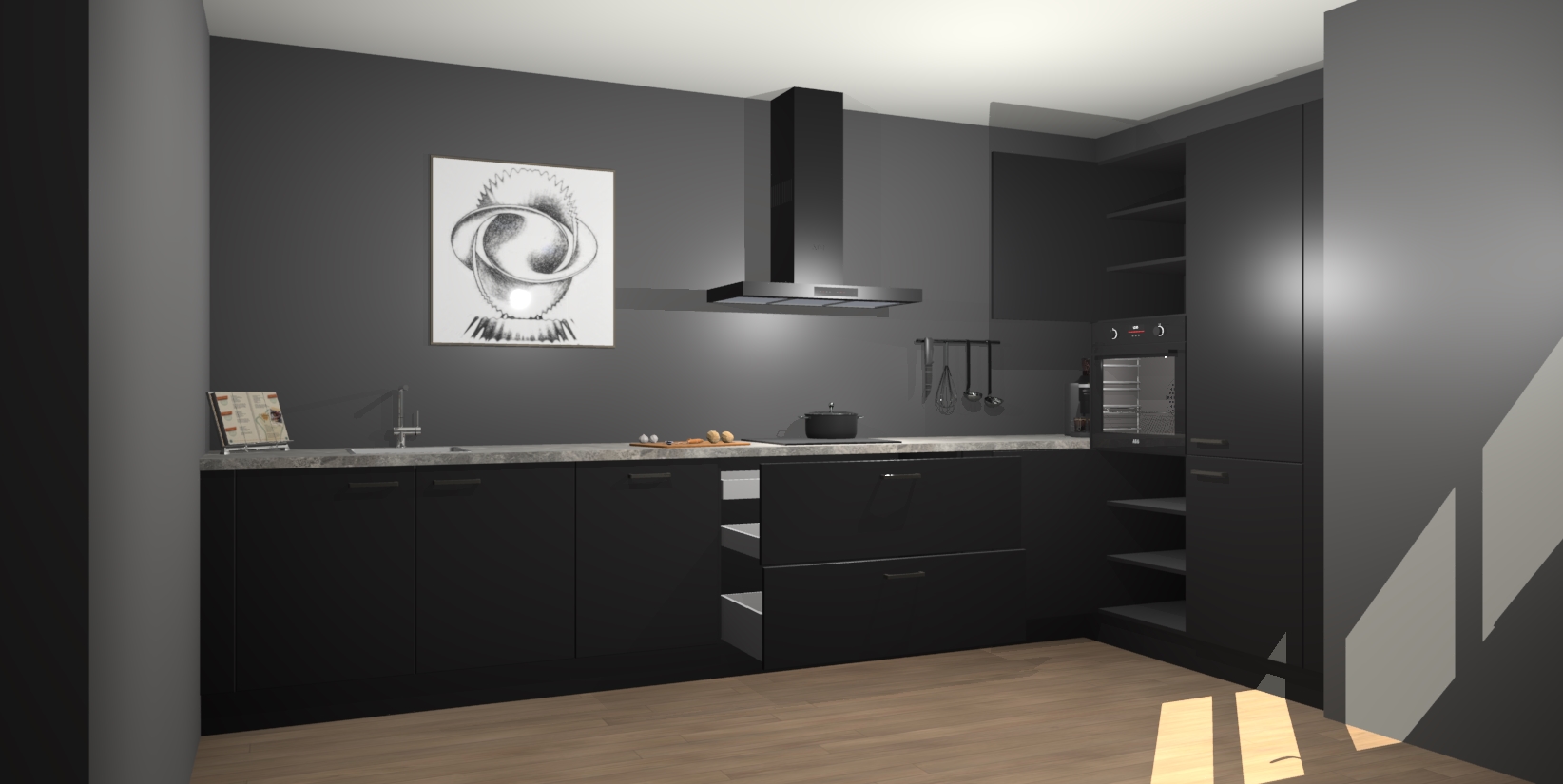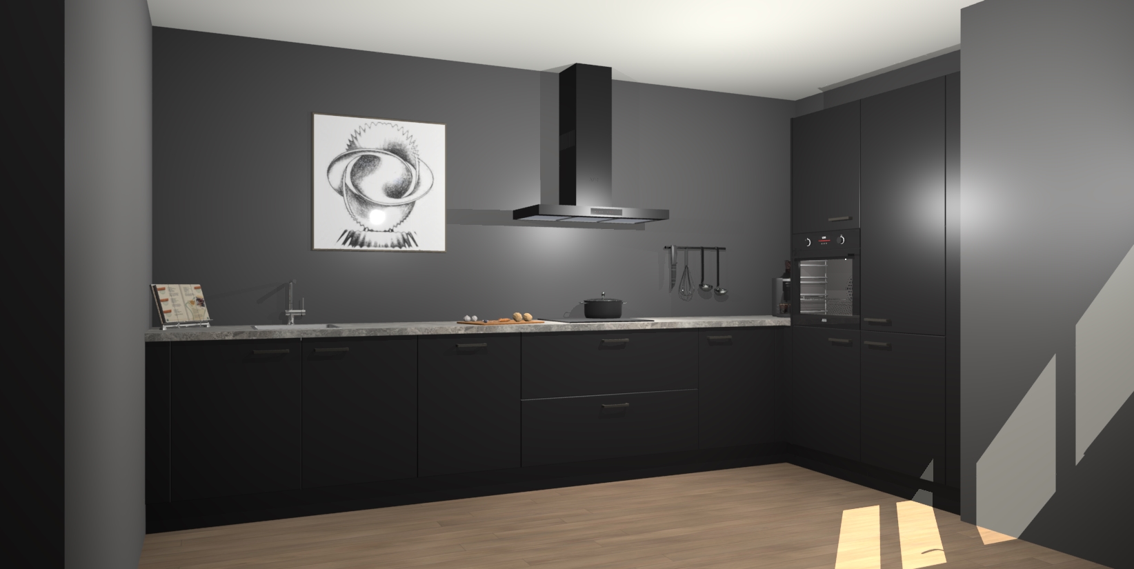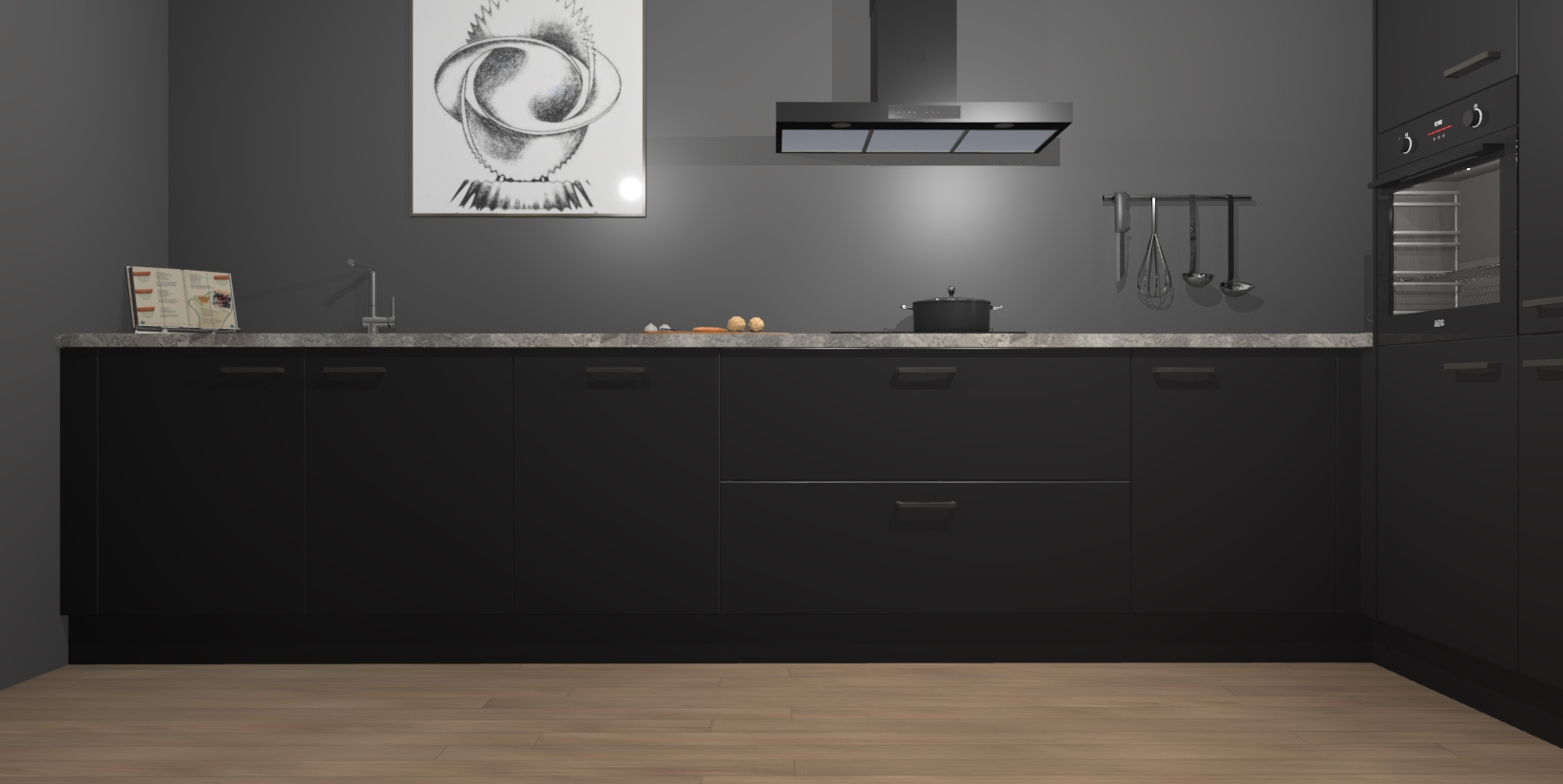 Welkom bij de Zwarte keuken Khao Lak. Deze prachtige keuken zal de komende jaren het middelpunt van de belangstelling in uw huis zijn. Uitgerust met vijf inbouwapparaten komt u nooit kookgereedschap tekort. Bovendien geeft de warme houtlook elke ruimte een uitnodigende en tijdloze uitstraling.