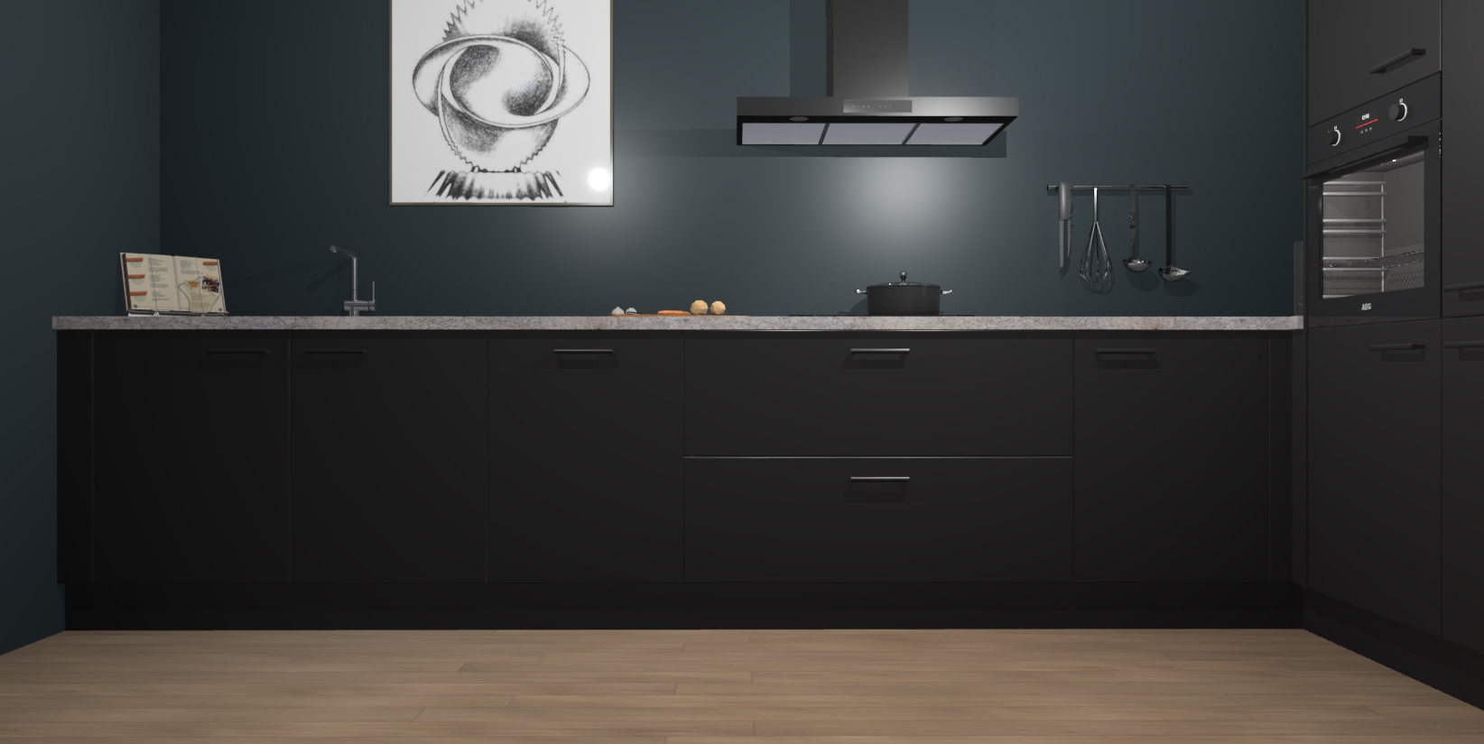 Welkom bij de Zwarte keuken Khao Lak. Deze prachtige keuken zal de komende jaren het middelpunt van de belangstelling in uw huis zijn. Uitgerust met vijf inbouwapparaten komt u nooit kookgereedschap tekort. Bovendien geeft de warme houtlook elke ruimte een uitnodigende en tijdloze uitstraling.