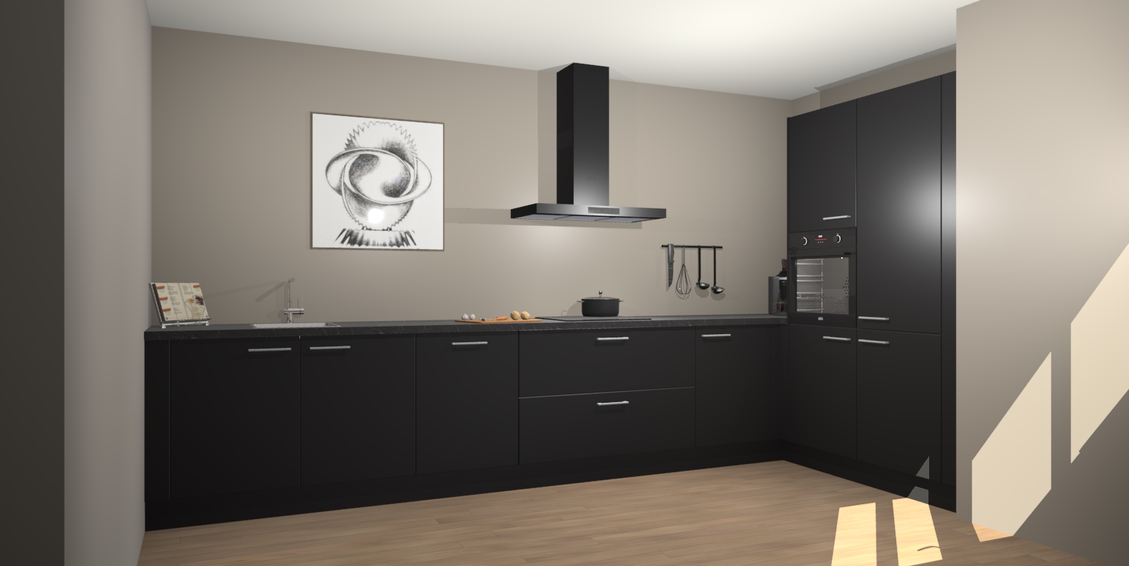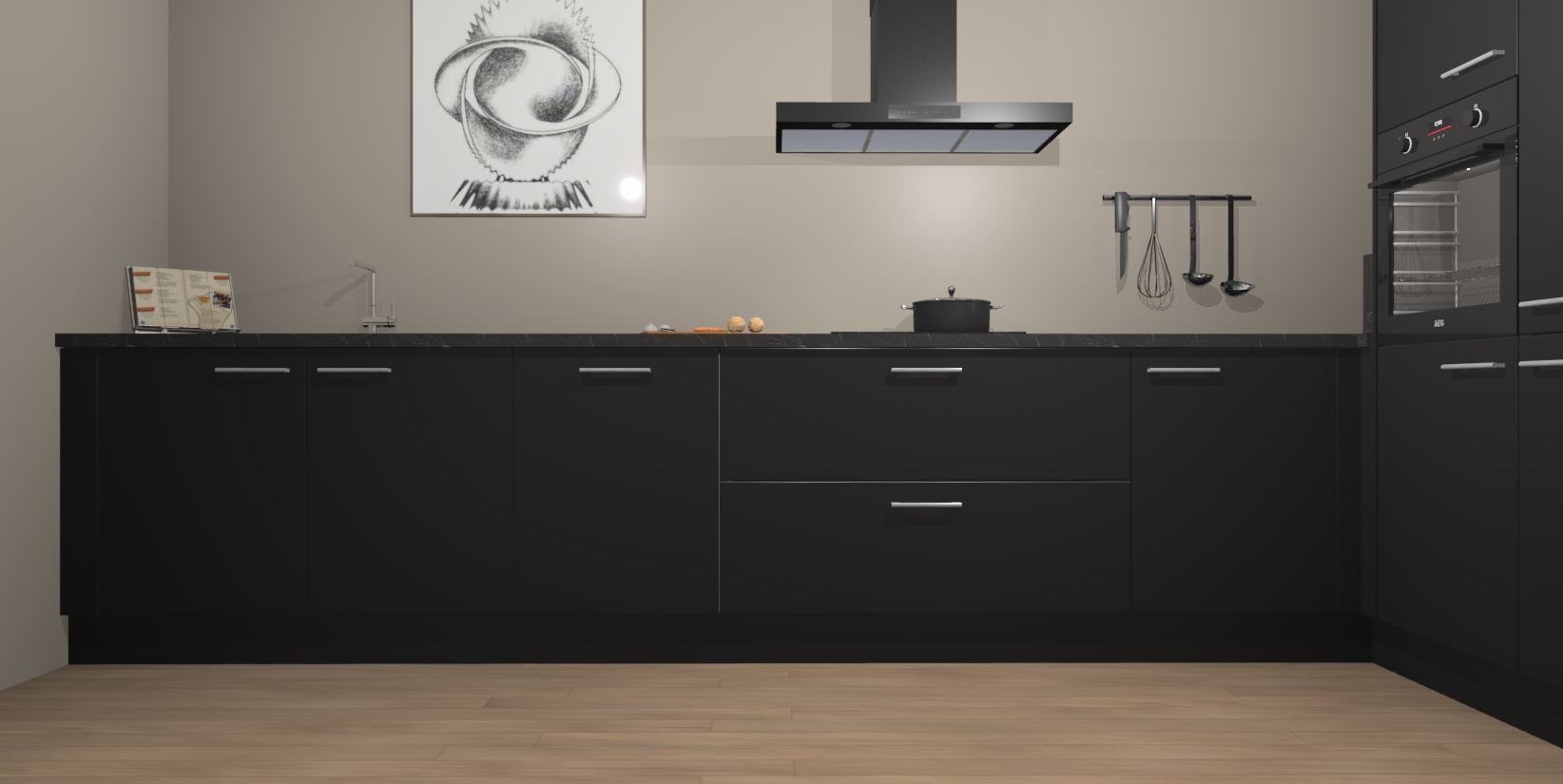 Welkom bij de Zwarte keuken Khao Lak. Deze prachtige keuken zal de komende jaren het middelpunt van de belangstelling in uw huis zijn. Uitgerust met vijf inbouwapparaten komt u nooit kookgereedschap tekort. Bovendien geeft de warme houtlook elke ruimte een uitnodigende en tijdloze uitstraling.