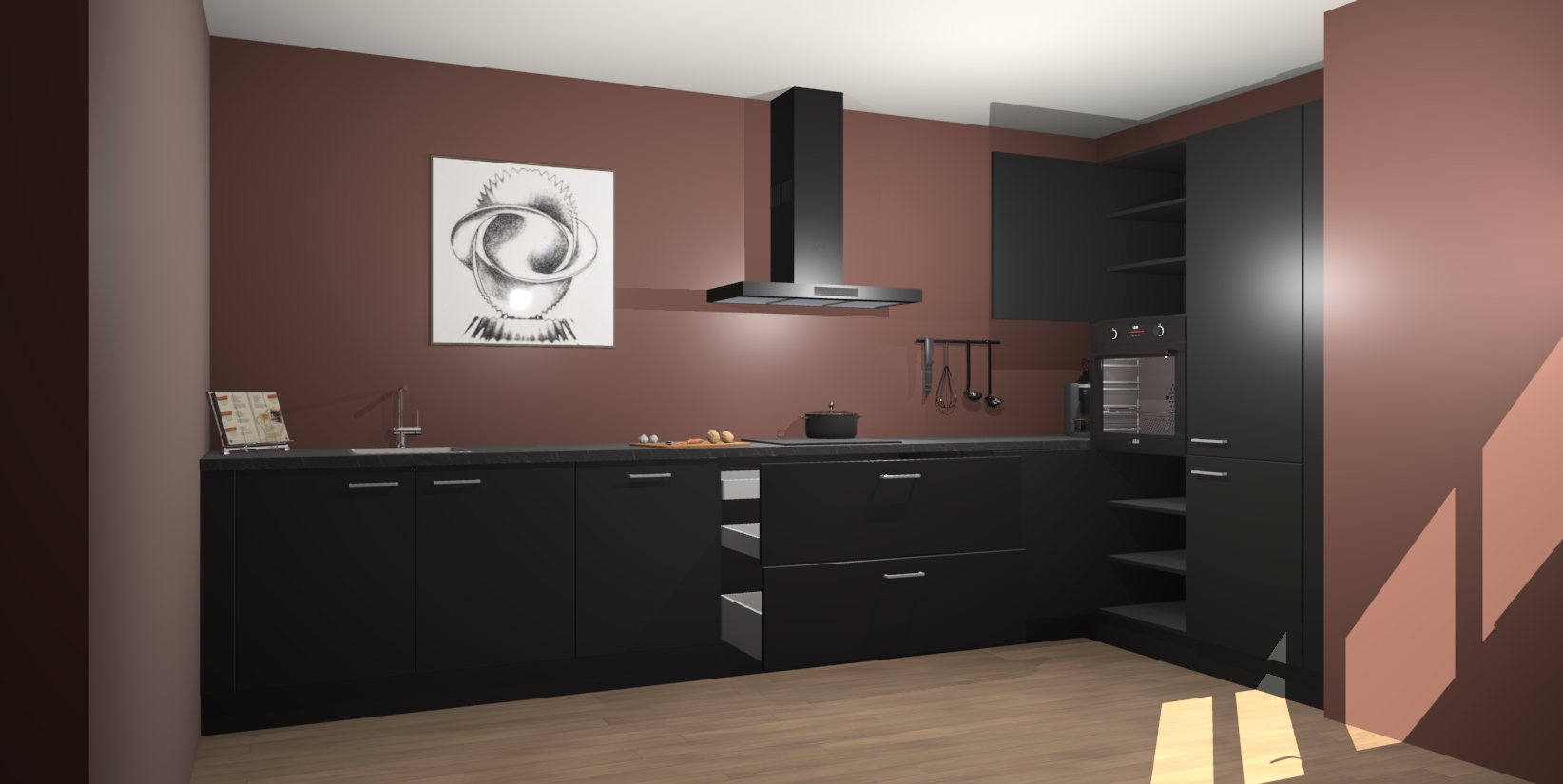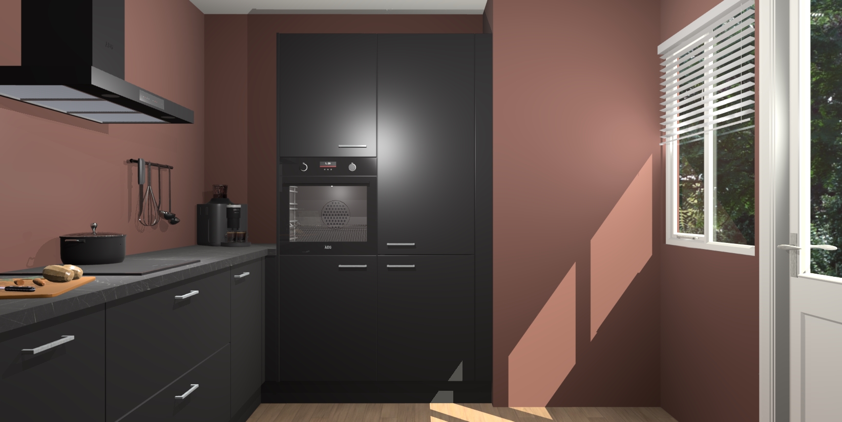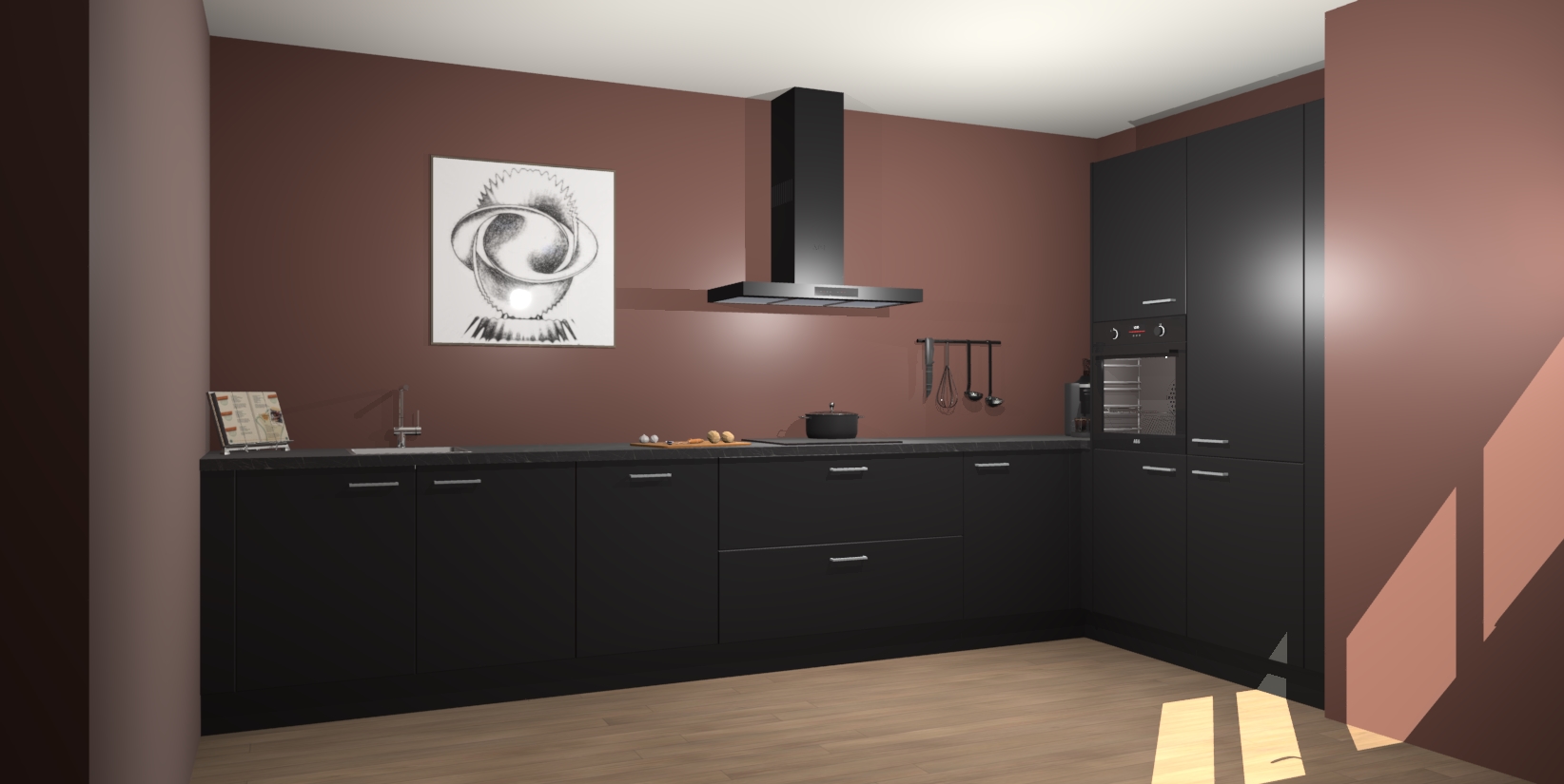 Welkom bij de Zwarte keuken Khao Lak. Deze prachtige keuken zal de komende jaren het middelpunt van de belangstelling in uw huis zijn. Uitgerust met vijf inbouwapparaten komt u nooit kookgereedschap tekort. Bovendien geeft de warme houtlook elke ruimte een uitnodigende en tijdloze uitstraling.