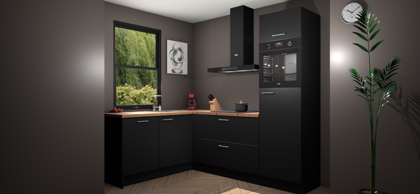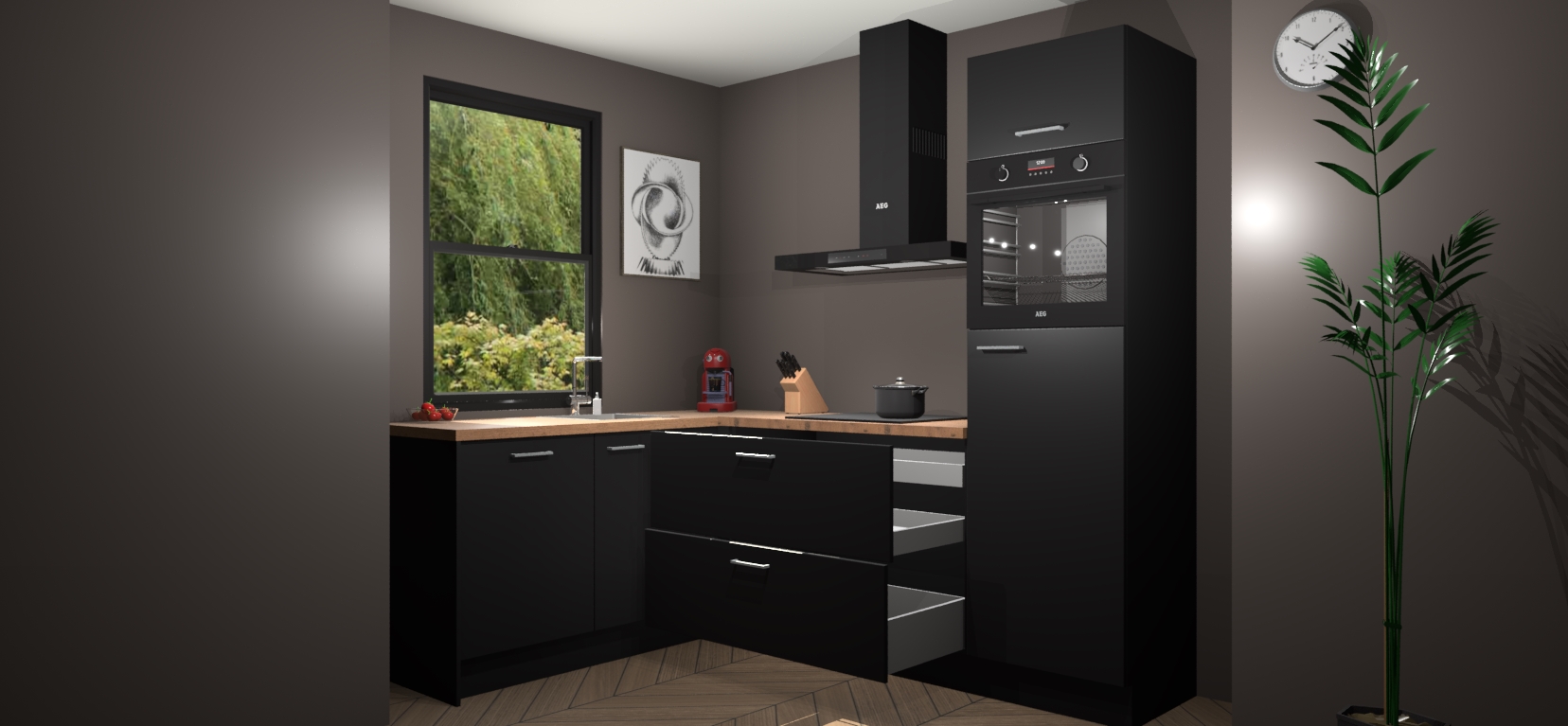 Moedige modernisten! De zwarte keuken Kinshasa is het perfecte antwoord op al uw keukendromen. Dit geraffineerde, tijdloze ontwerp combineert strakke kasten met hoogglans details zodat u die dure look krijgt zonder het dure prijskaartje. We weten dat planning en uitvoering de sleutels zijn tot een geslaagde keukenrenovatie, dus hebben we ervoor gezorgd dat we vijf inbouwapparaten in ons pakket hebben: een oven, inductiekookplaat, afzuigkap, vaatwasser en koelkast. Deze kunnen na bestelling gemakkelijk worden uitgebreid voor nog meer gemak.
