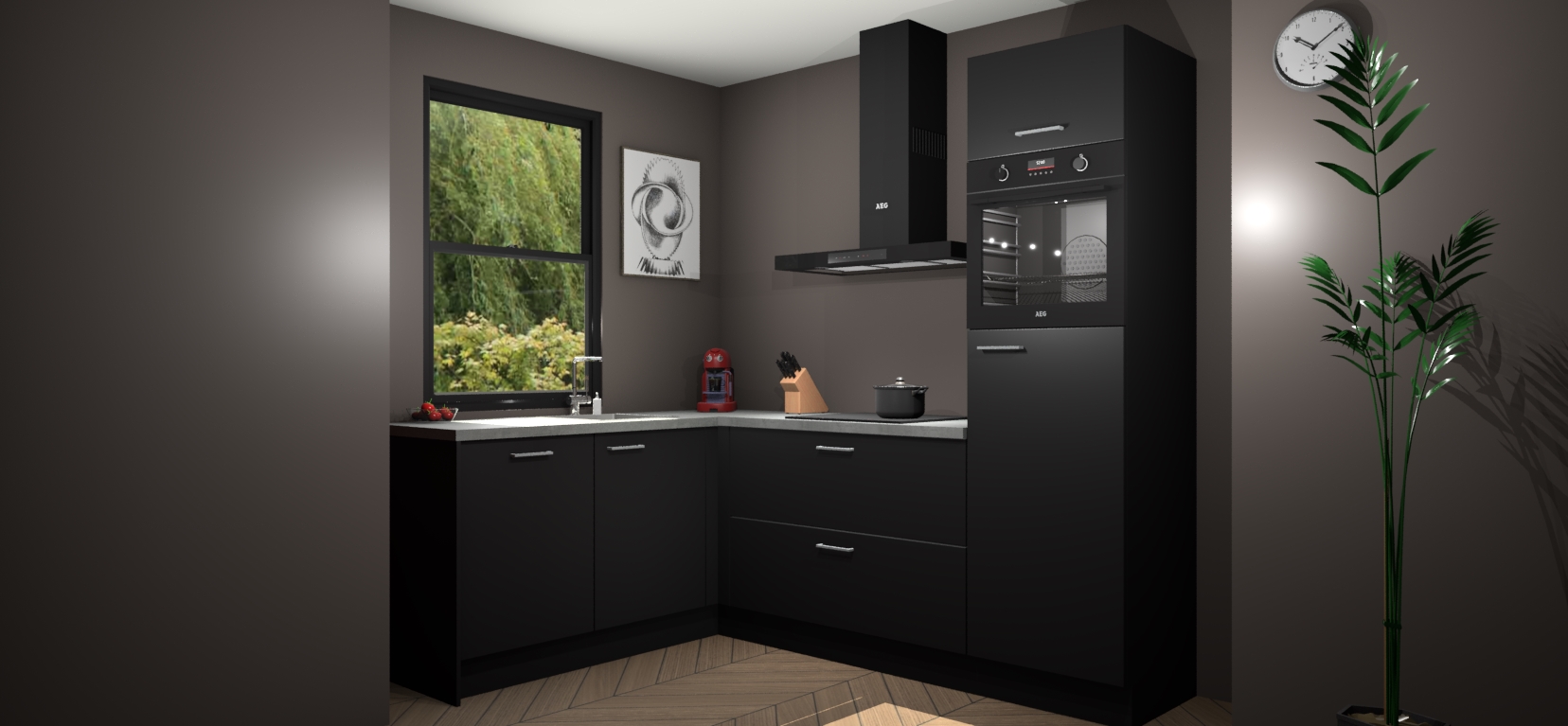 Moedige modernisten! De zwarte keuken Kinshasa is het perfecte antwoord op al uw keukendromen. Dit geraffineerde, tijdloze ontwerp combineert strakke kasten met hoogglans details zodat u die dure look krijgt zonder het dure prijskaartje. We weten dat planning en uitvoering de sleutels zijn tot een geslaagde keukenrenovatie, dus hebben we ervoor gezorgd dat we vijf inbouwapparaten in ons pakket hebben: een oven, inductiekookplaat, afzuigkap, vaatwasser en koelkast. Deze kunnen na bestelling gemakkelijk worden uitgebreid voor nog meer gemak.