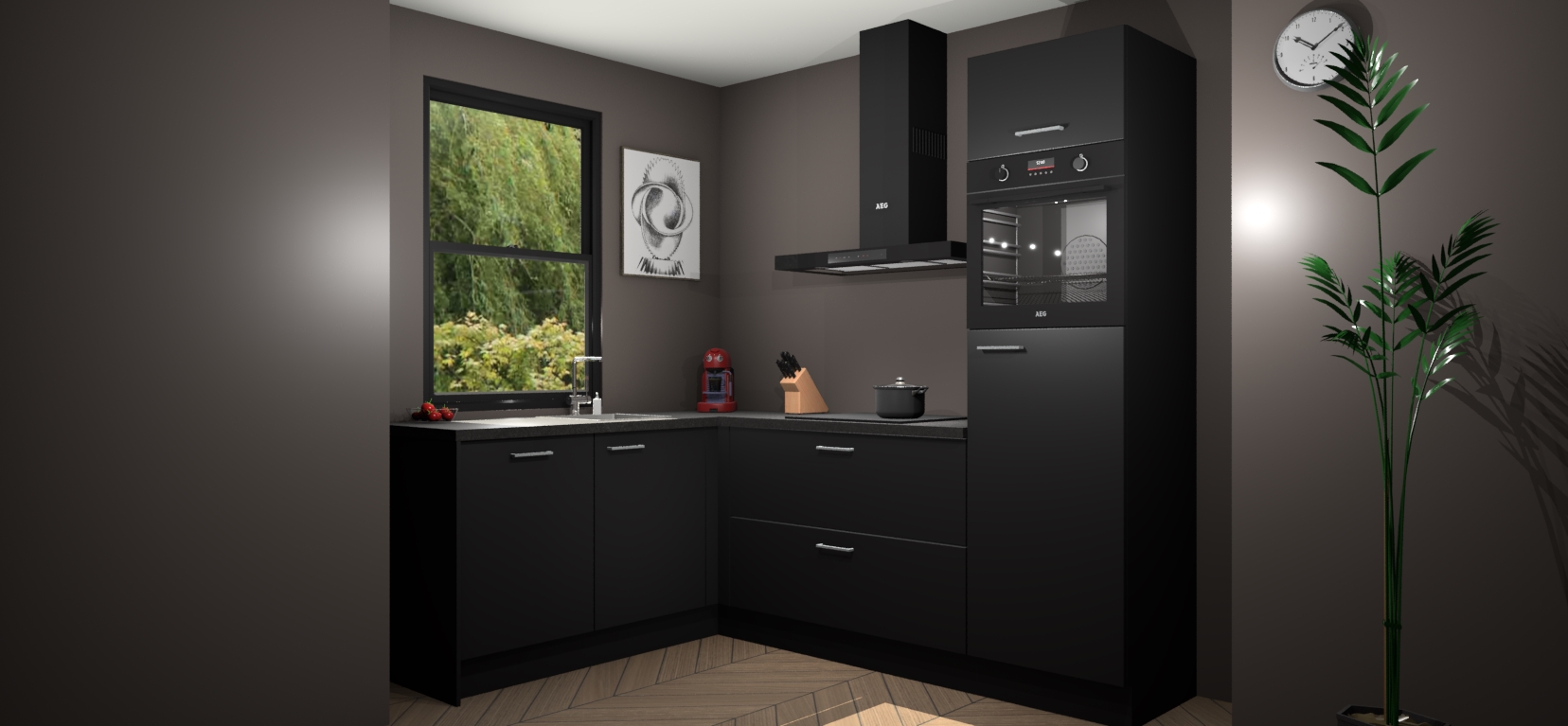 Moedige modernisten! De zwarte keuken Kinshasa is het perfecte antwoord op al uw keukendromen. Dit geraffineerde, tijdloze ontwerp combineert strakke kasten met hoogglans details zodat u die dure look krijgt zonder het dure prijskaartje. We weten dat planning en uitvoering de sleutels zijn tot een geslaagde keukenrenovatie, dus hebben we ervoor gezorgd dat we vijf inbouwapparaten in ons pakket hebben: een oven, inductiekookplaat, afzuigkap, vaatwasser en koelkast. Deze kunnen na bestelling gemakkelijk worden uitgebreid voor nog meer gemak.