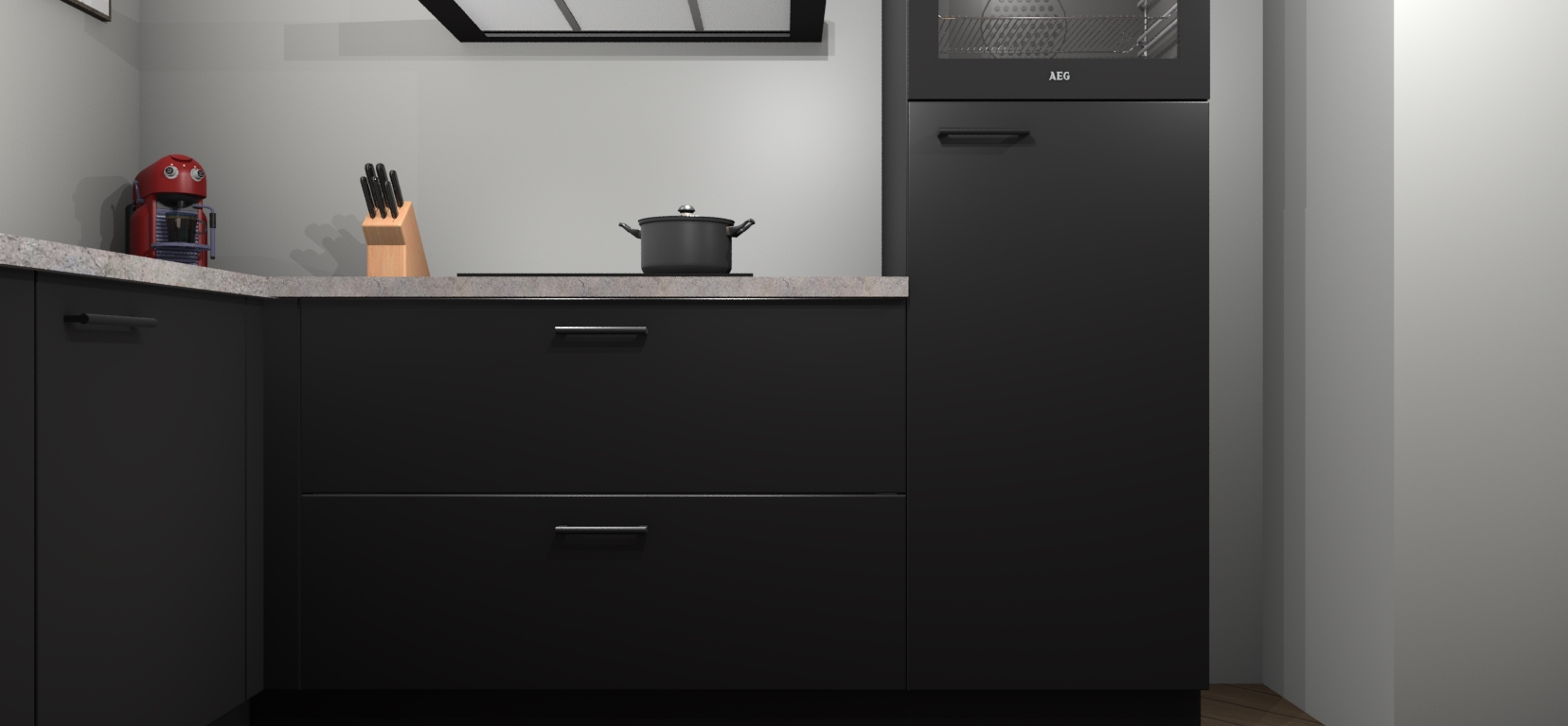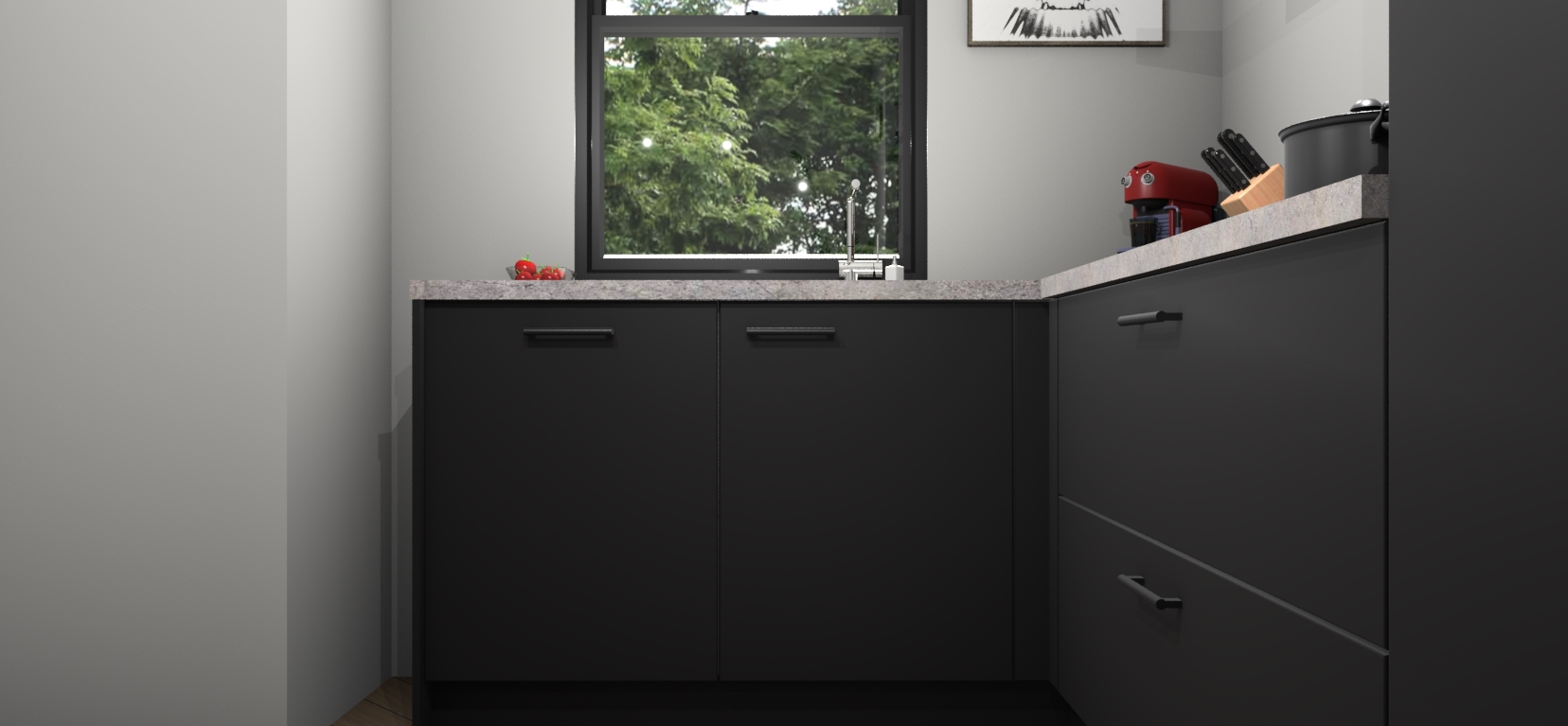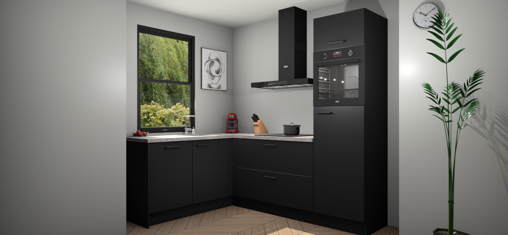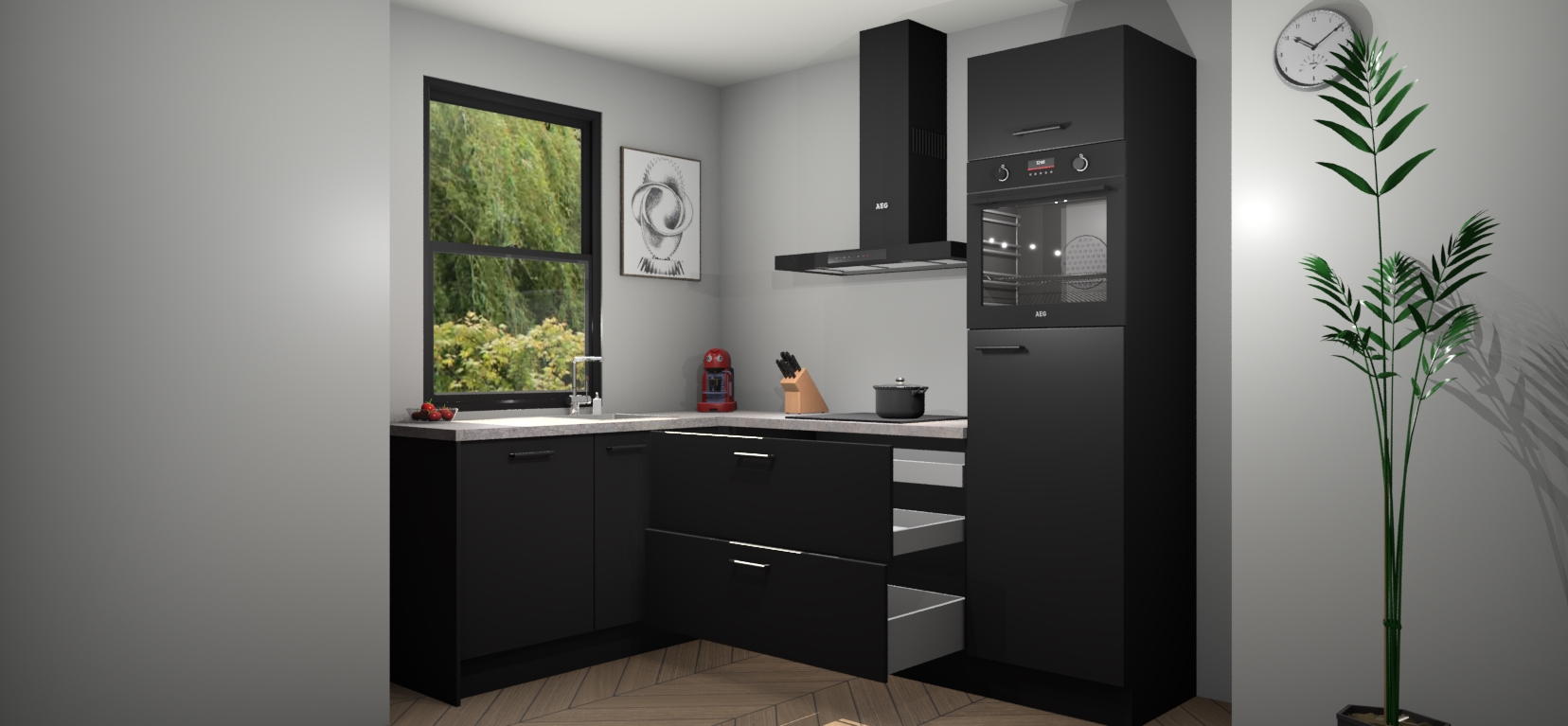 Moedige modernisten! De zwarte keuken Kinshasa is het perfecte antwoord op al uw keukendromen. Dit geraffineerde, tijdloze ontwerp combineert strakke kasten met hoogglans details zodat u die dure look krijgt zonder het dure prijskaartje. We weten dat planning en uitvoering de sleutels zijn tot een geslaagde keukenrenovatie, dus hebben we ervoor gezorgd dat we vijf inbouwapparaten in ons pakket hebben: een oven, inductiekookplaat, afzuigkap, vaatwasser en koelkast. Deze kunnen na bestelling gemakkelijk worden uitgebreid voor nog meer gemak.