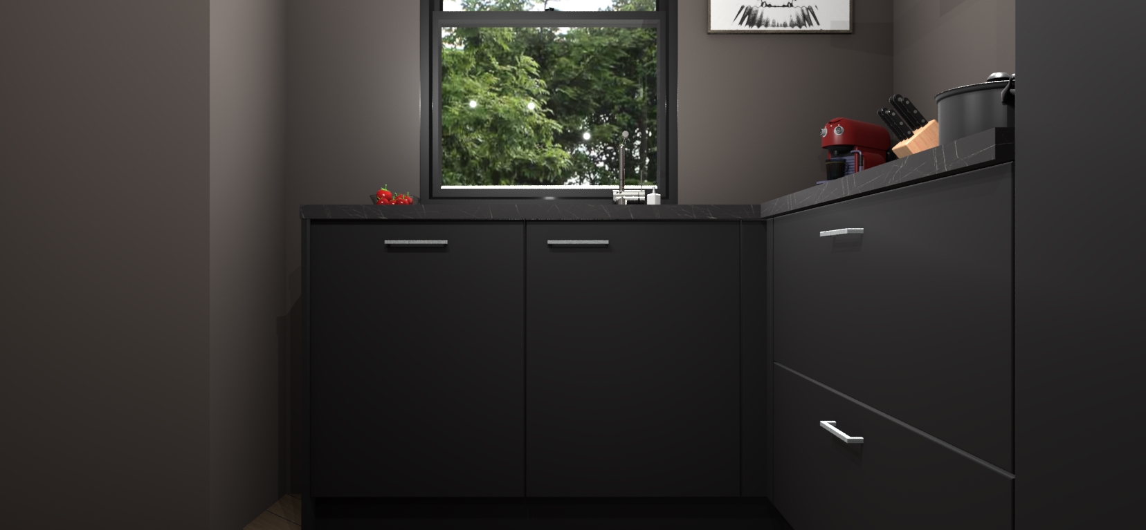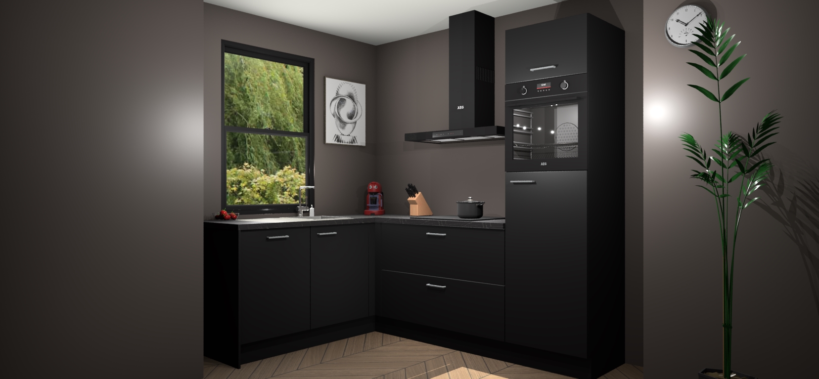 Moedige modernisten! De zwarte keuken Kinshasa is het perfecte antwoord op al uw keukendromen. Dit geraffineerde, tijdloze ontwerp combineert strakke kasten met hoogglans details zodat u die dure look krijgt zonder het dure prijskaartje. We weten dat planning en uitvoering de sleutels zijn tot een geslaagde keukenrenovatie, dus hebben we ervoor gezorgd dat we vijf inbouwapparaten in ons pakket hebben: een oven, inductiekookplaat, afzuigkap, vaatwasser en koelkast. Deze kunnen na bestelling gemakkelijk worden uitgebreid voor nog meer gemak.