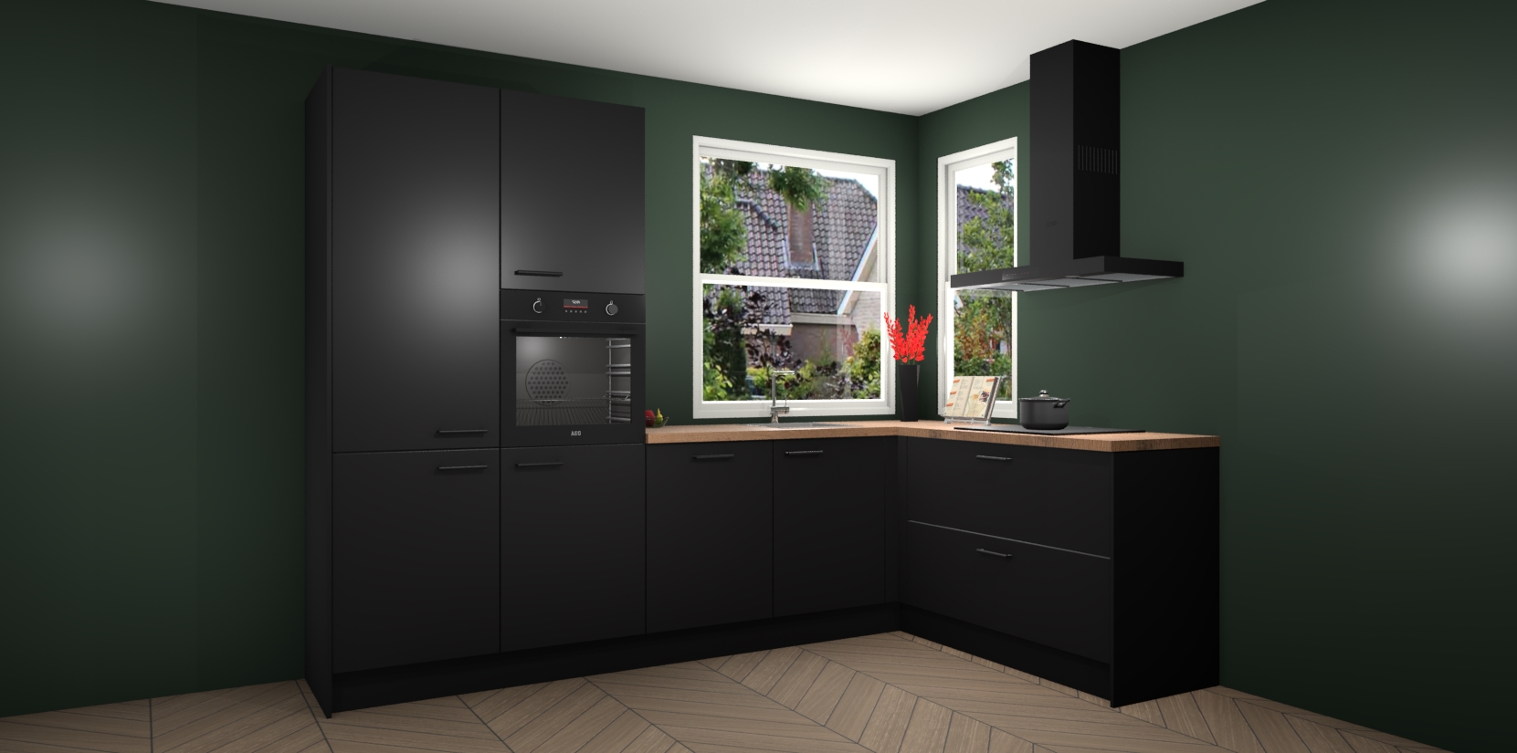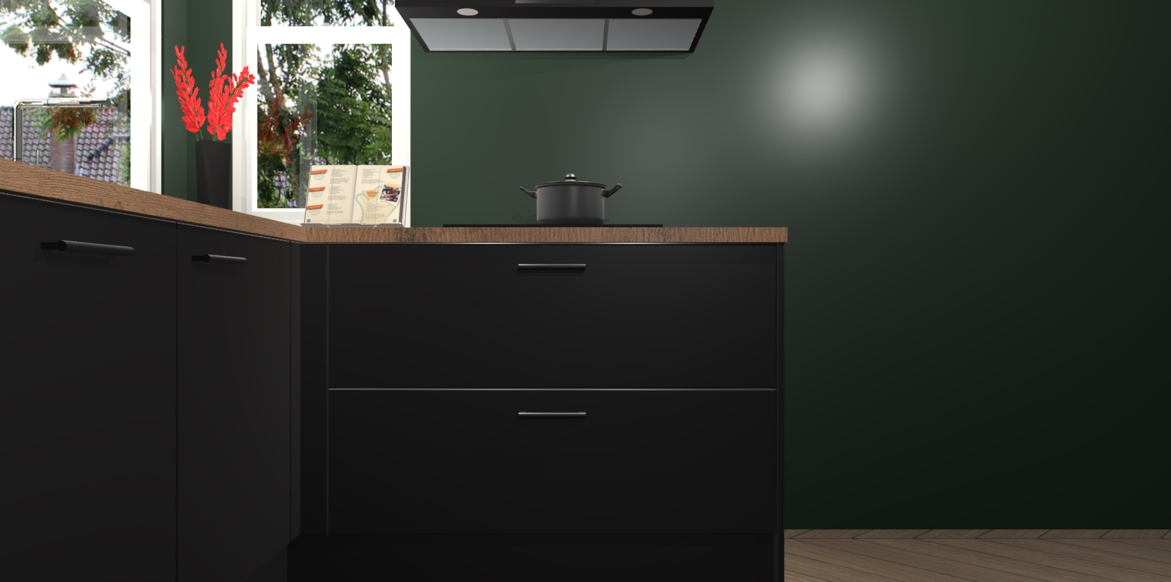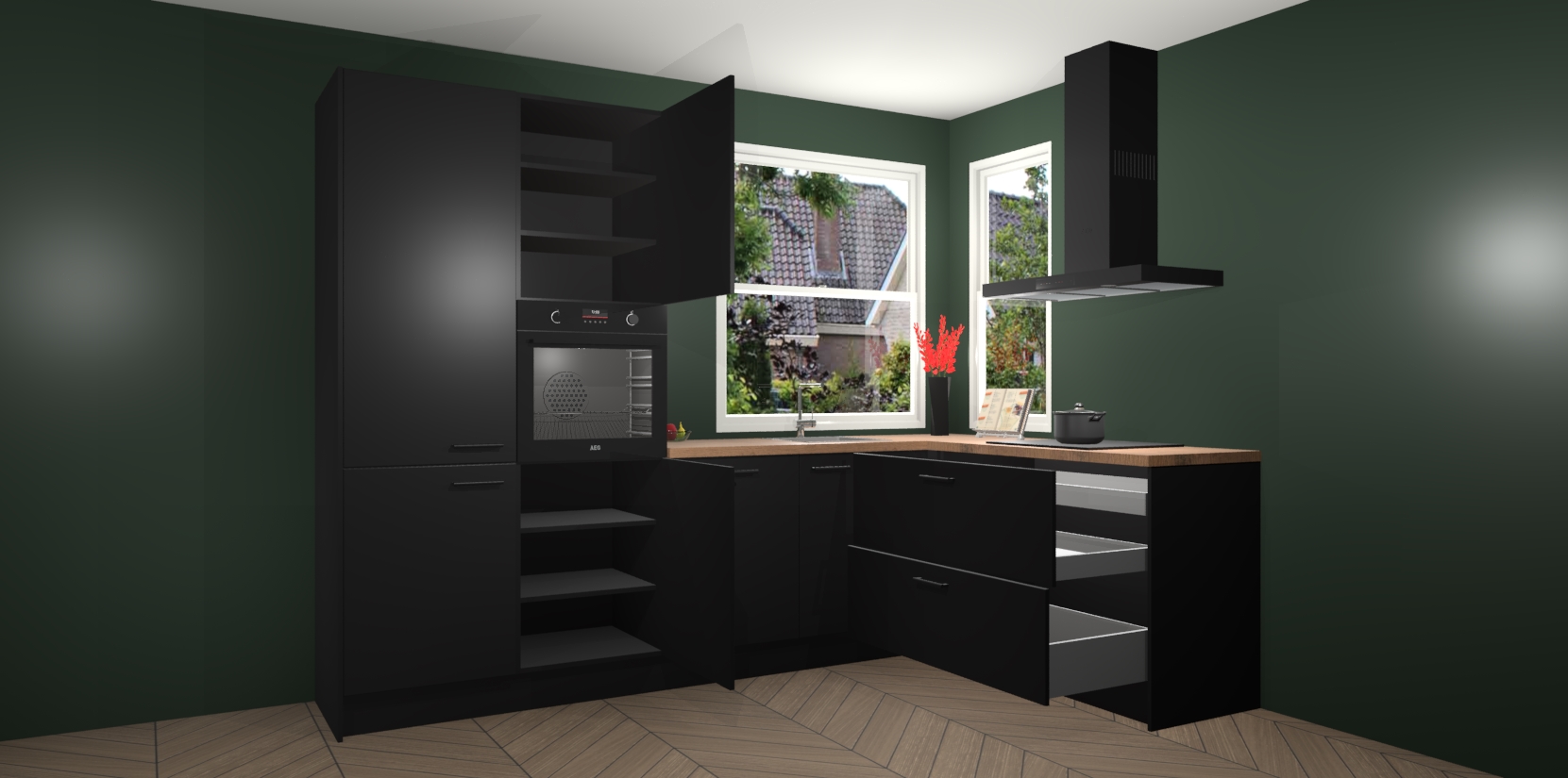 Het is tijd om halsoverkop verliefd te worden op uw droomkeuken, en de Zwarte keuken Kotor is precies wat u nodig heeft! Met een moderne, tijdloze constructie en een mix van prachtig design zal deze luxe hoekkeuken zeker opvallen. Maar laat de schoonheid u niet afleiden van de indrukwekkende functies - want onder dit alles schuilt een onovertroffen hoeveelheid lekkers!