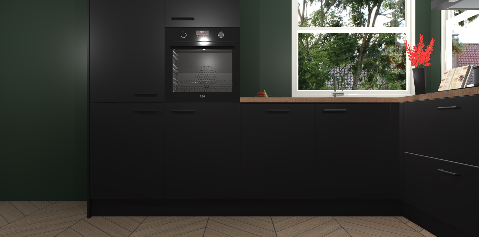 Elke Zwarte keuken Kotor wordt compleet geleverd met vijf inbouwapparaten, waaronder een oven, inductiekookplaat, afzuigkap, vaatwasser en koelkast. Sterker nog - indien gewenst kunt u deze apparaten na bestelling eenvoudig upgraden naar AEG! Extra functies zijn onder andere soft close deuren voor extra gemak, en elke kast wordt voor gemonteerd geleverd zodat u sneller van uw nieuwe keuken kunt genieten.