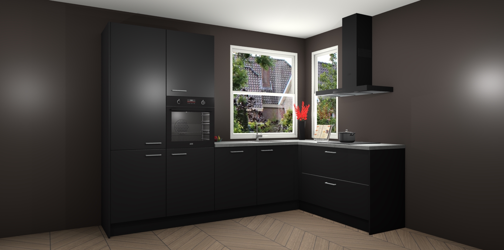 Het is tijd om halsoverkop verliefd te worden op uw droomkeuken, en de Zwarte keuken Kotor is precies wat u nodig heeft! Met een moderne, tijdloze constructie en een mix van prachtig design zal deze luxe hoekkeuken zeker opvallen. Maar laat de schoonheid u niet afleiden van de indrukwekkende functies - want onder dit alles schuilt een onovertroffen hoeveelheid lekkers!