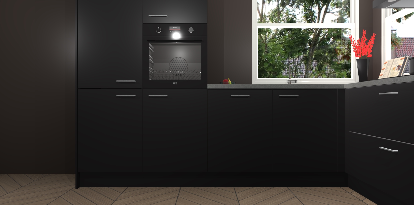 Elke Zwarte keuken Kotor wordt compleet geleverd met vijf inbouwapparaten, waaronder een oven, inductiekookplaat, afzuigkap, vaatwasser en koelkast. Sterker nog - indien gewenst kunt u deze apparaten na bestelling eenvoudig upgraden naar AEG! Extra functies zijn onder andere soft close deuren voor extra gemak, en elke kast wordt voor gemonteerd geleverd zodat u sneller van uw nieuwe keuken kunt genieten.