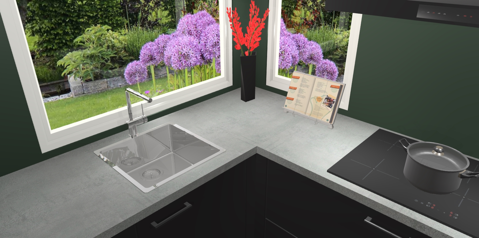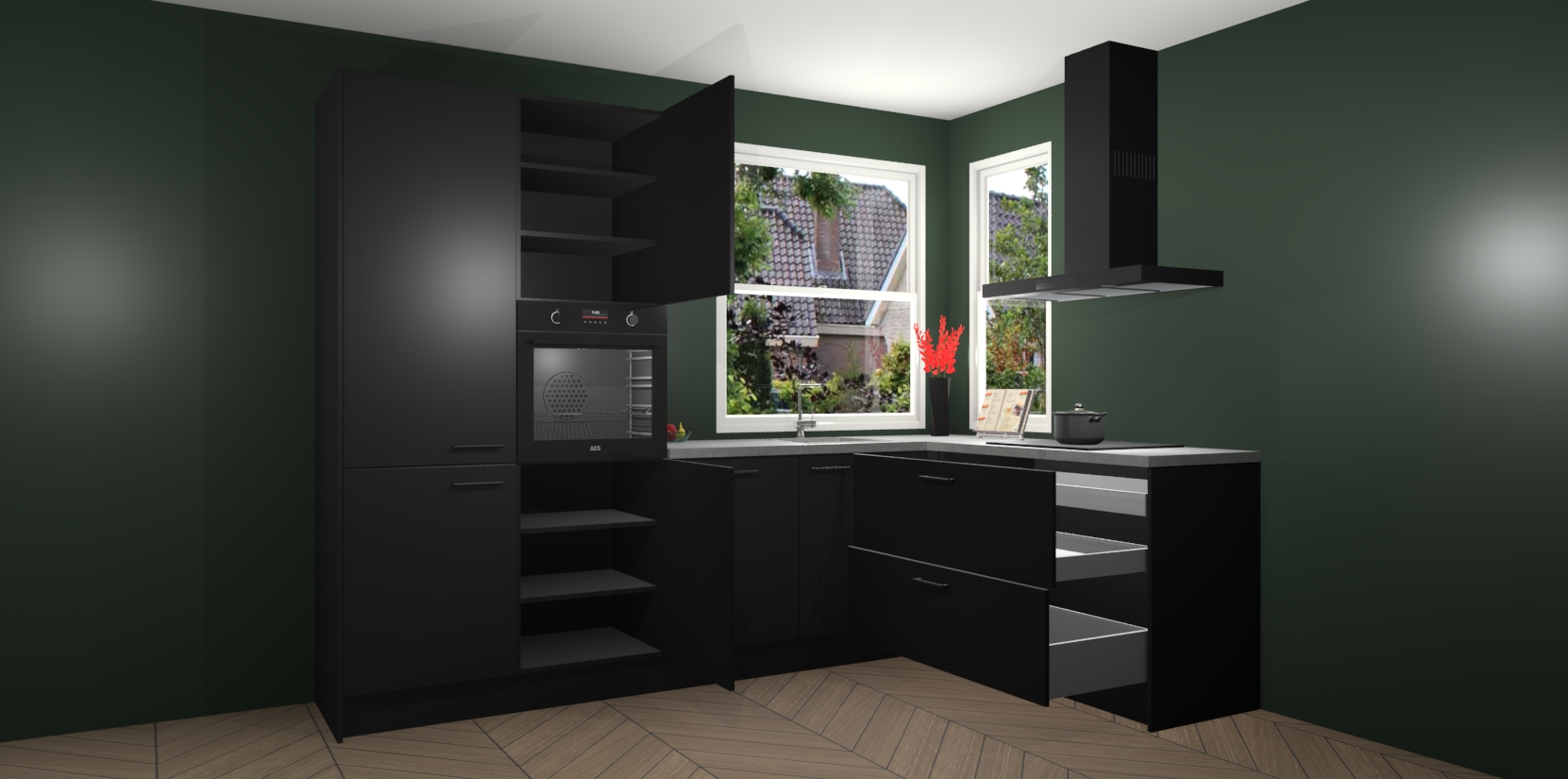 Het is tijd om halsoverkop verliefd te worden op uw droomkeuken, en de Zwarte keuken Kotor is precies wat u nodig heeft! Met een moderne, tijdloze constructie en een mix van prachtig design zal deze luxe hoekkeuken zeker opvallen. Maar laat de schoonheid u niet afleiden van de indrukwekkende functies - want onder dit alles schuilt een onovertroffen hoeveelheid lekkers!