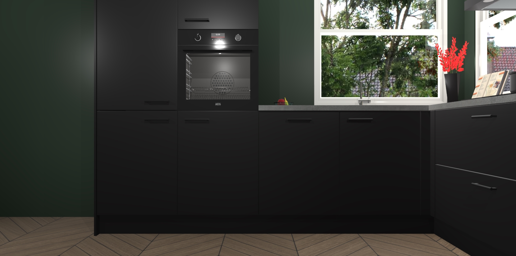 Elke Zwarte keuken Kotor wordt compleet geleverd met vijf inbouwapparaten, waaronder een oven, inductiekookplaat, afzuigkap, vaatwasser en koelkast. Sterker nog - indien gewenst kunt u deze apparaten na bestelling eenvoudig upgraden naar AEG! Extra functies zijn onder andere soft close deuren voor extra gemak, en elke kast wordt voor gemonteerd geleverd zodat u sneller van uw nieuwe keuken kunt genieten.