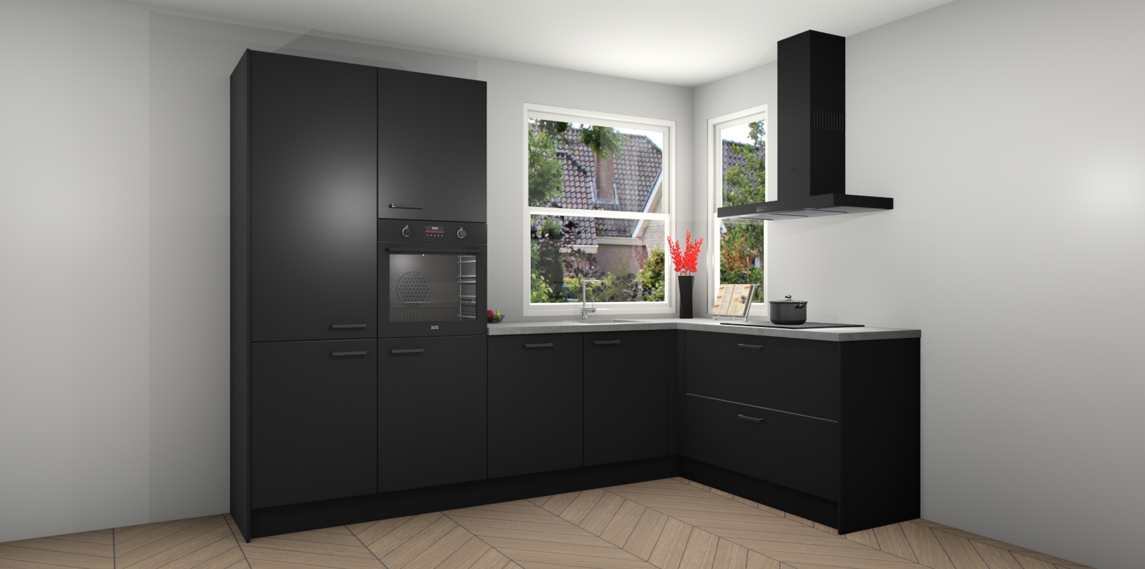 Elke Zwarte keuken Kotor wordt compleet geleverd met vijf inbouwapparaten, waaronder een oven, inductiekookplaat, afzuigkap, vaatwasser en koelkast. Sterker nog - indien gewenst kunt u deze apparaten na bestelling eenvoudig upgraden naar AEG! Extra functies zijn onder andere soft close deuren voor extra gemak, en elke kast wordt voor gemonteerd geleverd zodat u sneller van uw nieuwe keuken kunt genieten.