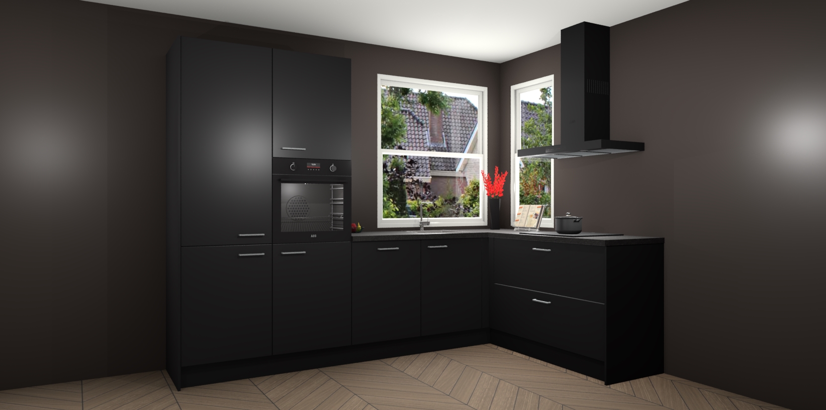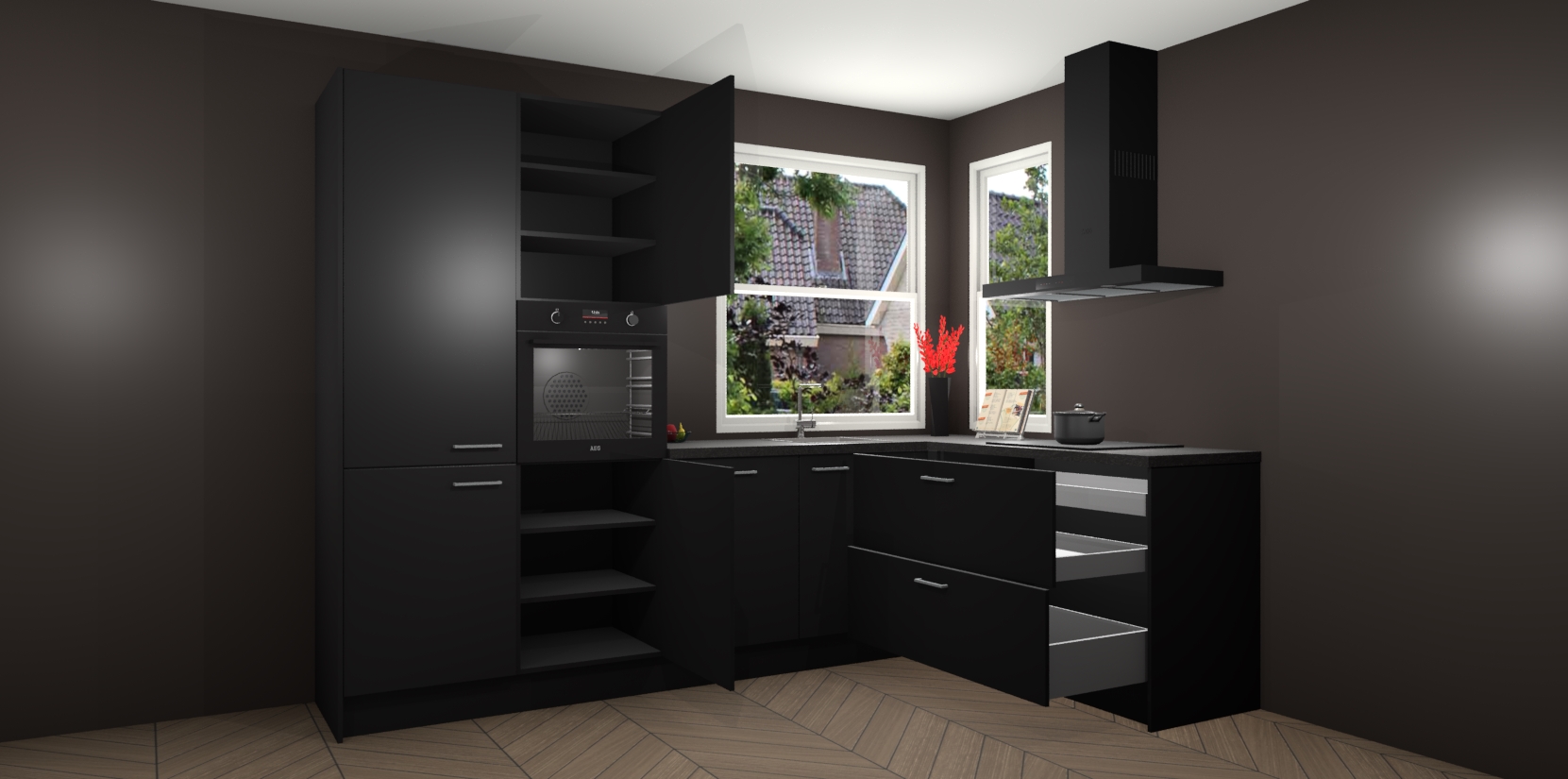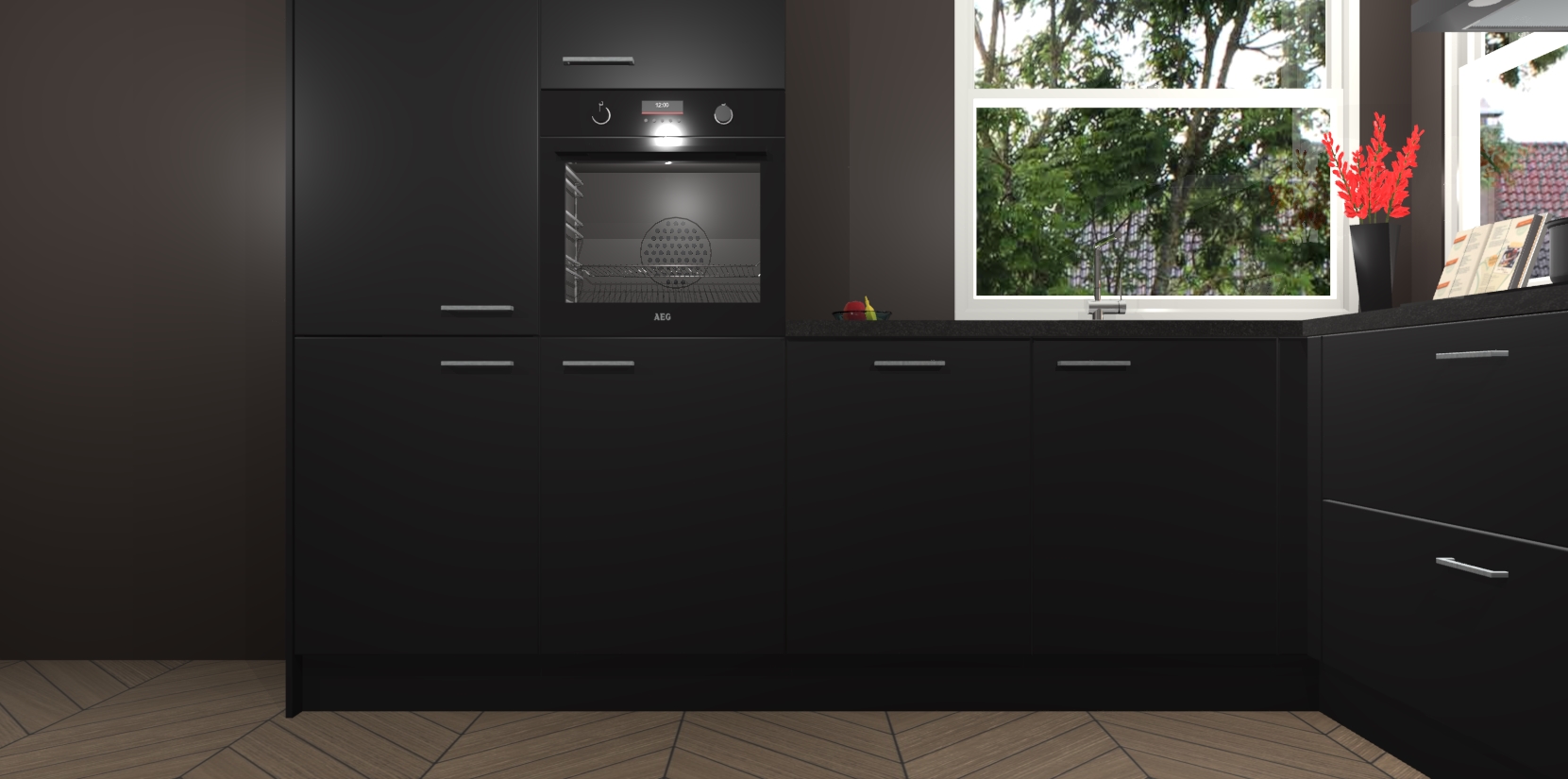 Elke Zwarte keuken Kotor wordt compleet geleverd met vijf inbouwapparaten, waaronder een oven, inductiekookplaat, afzuigkap, vaatwasser en koelkast. Sterker nog - indien gewenst kunt u deze apparaten na bestelling eenvoudig upgraden naar AEG! Extra functies zijn onder andere soft close deuren voor extra gemak, en elke kast wordt voor gemonteerd geleverd zodat u sneller van uw nieuwe keuken kunt genieten.
