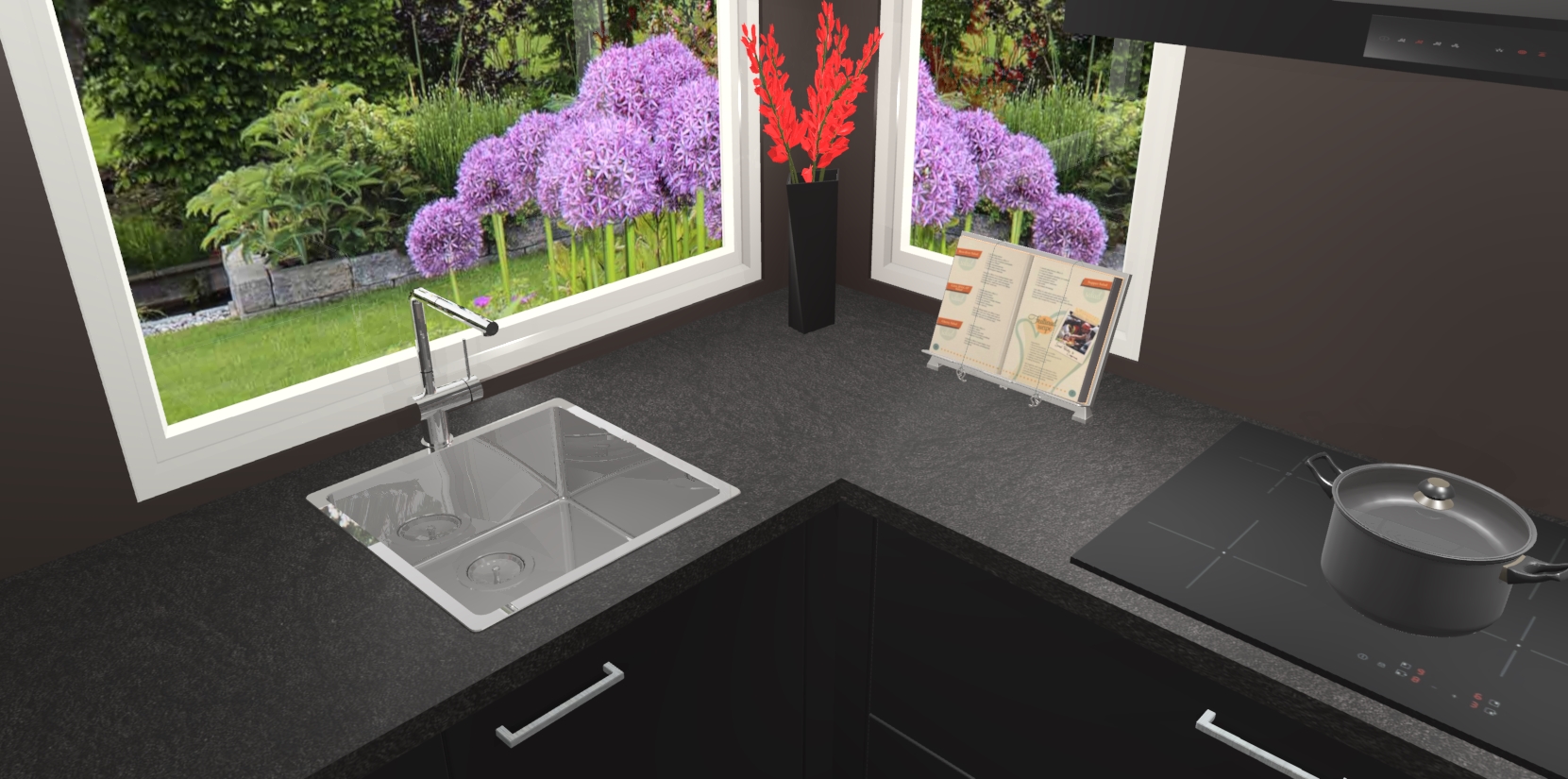 Het is tijd om halsoverkop verliefd te worden op uw droomkeuken, en de Zwarte keuken Kotor is precies wat u nodig heeft! Met een moderne, tijdloze constructie en een mix van prachtig design zal deze luxe hoekkeuken zeker opvallen. Maar laat de schoonheid u niet afleiden van de indrukwekkende functies - want onder dit alles schuilt een onovertroffen hoeveelheid lekkers!