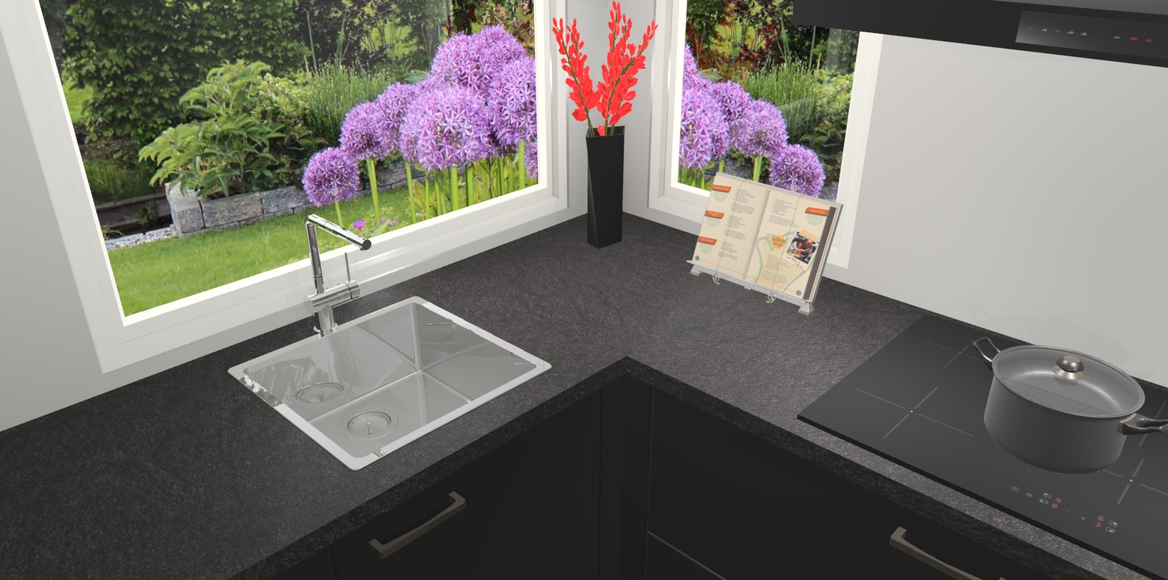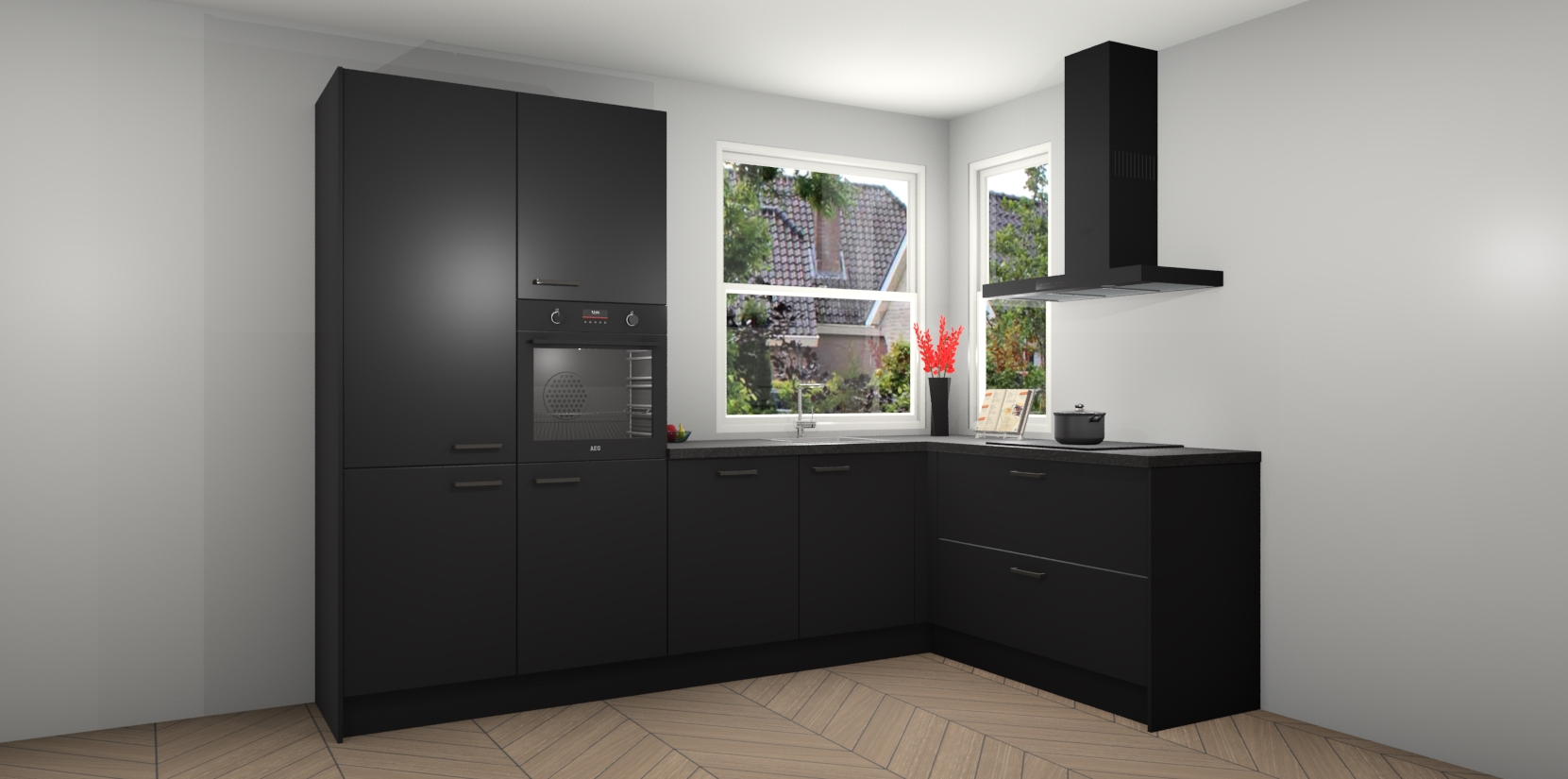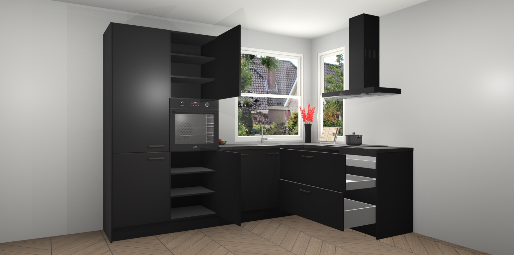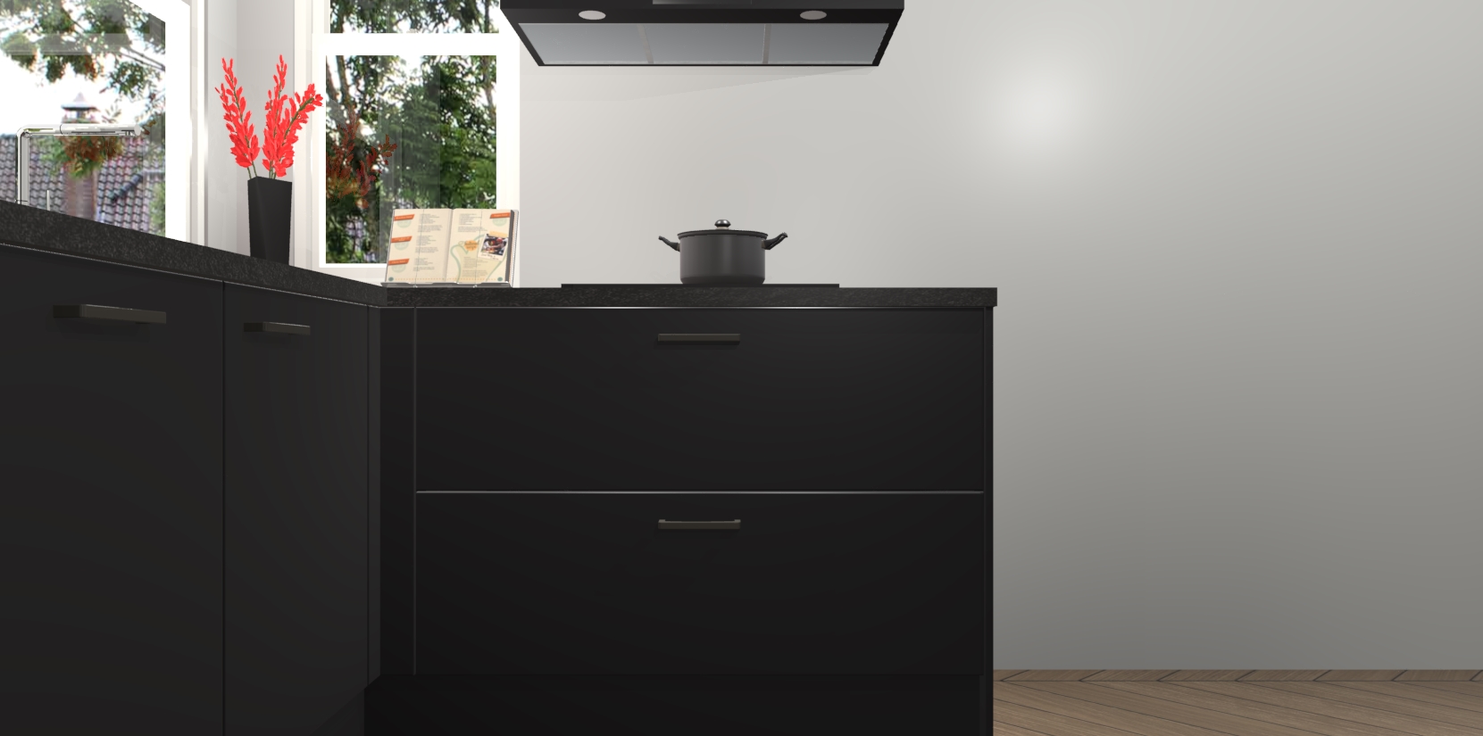 Het is tijd om halsoverkop verliefd te worden op uw droomkeuken, en de Zwarte keuken Kotor is precies wat u nodig heeft! Met een moderne, tijdloze constructie en een mix van prachtig design zal deze luxe hoekkeuken zeker opvallen. Maar laat de schoonheid u niet afleiden van de indrukwekkende functies - want onder dit alles schuilt een onovertroffen hoeveelheid lekkers!