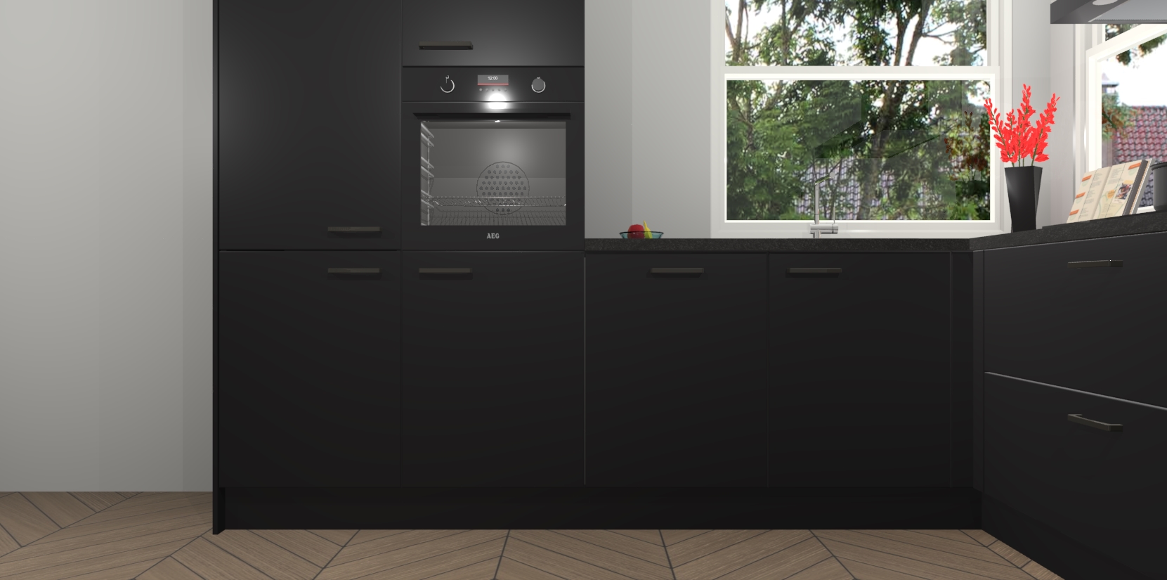 Elke Zwarte keuken Kotor wordt compleet geleverd met vijf inbouwapparaten, waaronder een oven, inductiekookplaat, afzuigkap, vaatwasser en koelkast. Sterker nog - indien gewenst kunt u deze apparaten na bestelling eenvoudig upgraden naar AEG! Extra functies zijn onder andere soft close deuren voor extra gemak, en elke kast wordt voor gemonteerd geleverd zodat u sneller van uw nieuwe keuken kunt genieten.