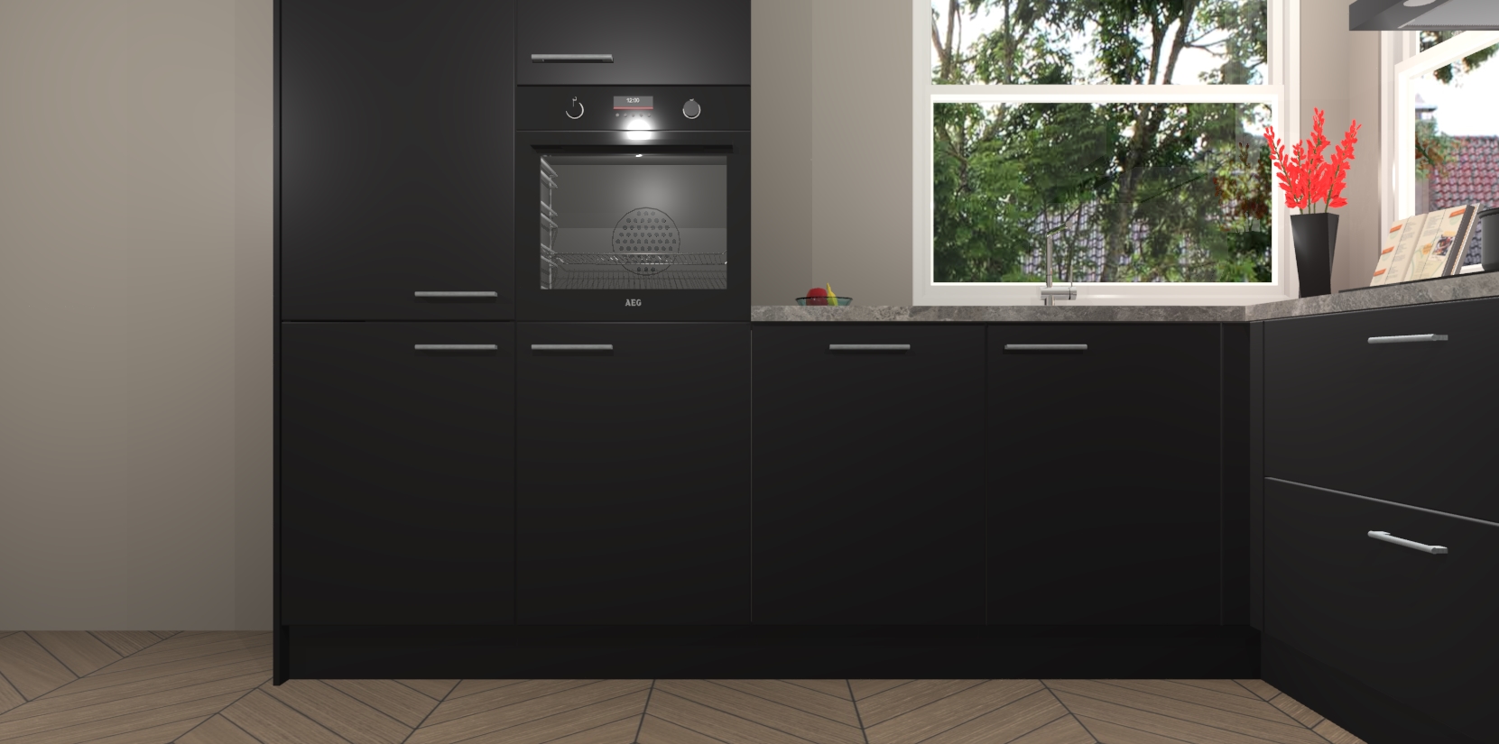 Elke Zwarte keuken Kotor wordt compleet geleverd met vijf inbouwapparaten, waaronder een oven, inductiekookplaat, afzuigkap, vaatwasser en koelkast. Sterker nog - indien gewenst kunt u deze apparaten na bestelling eenvoudig upgraden naar AEG! Extra functies zijn onder andere soft close deuren voor extra gemak, en elke kast wordt voor gemonteerd geleverd zodat u sneller van uw nieuwe keuken kunt genieten.