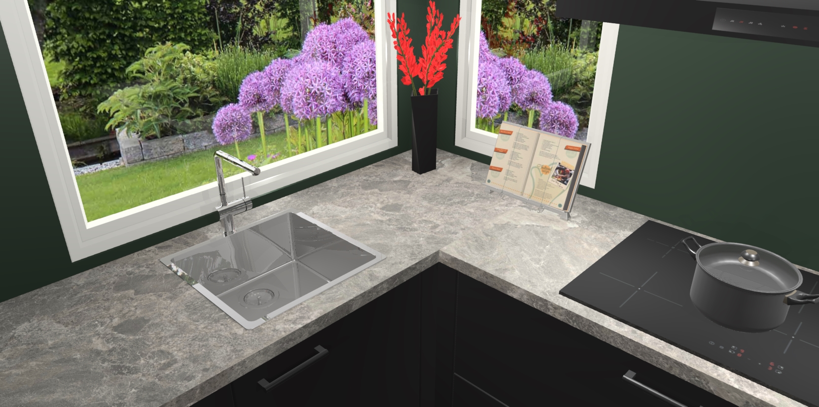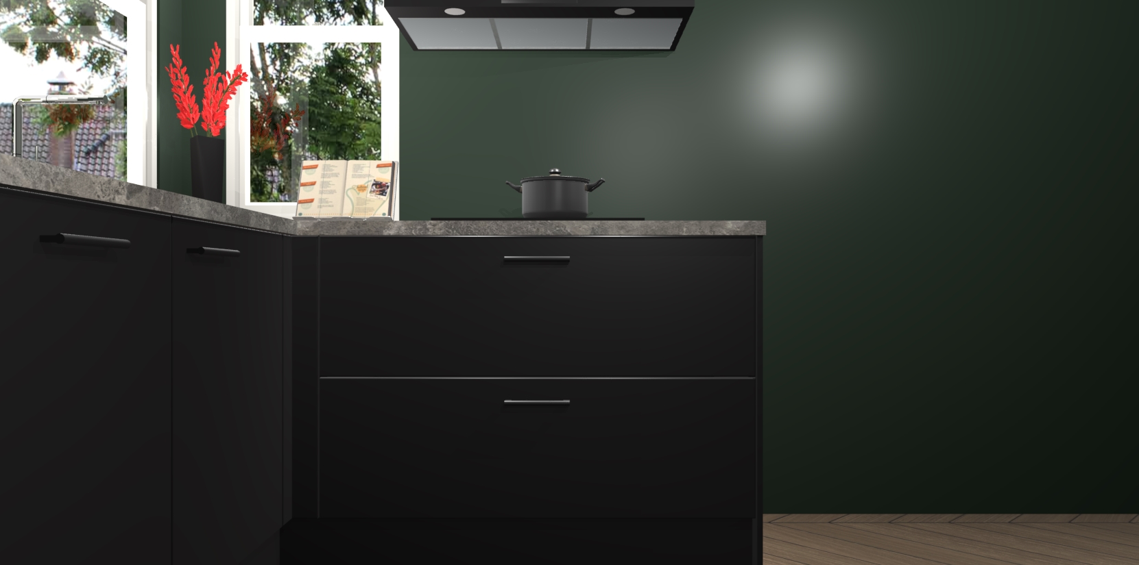Het is tijd om halsoverkop verliefd te worden op uw droomkeuken, en de Zwarte keuken Kotor is precies wat u nodig heeft! Met een moderne, tijdloze constructie en een mix van prachtig design zal deze luxe hoekkeuken zeker opvallen. Maar laat de schoonheid u niet afleiden van de indrukwekkende functies - want onder dit alles schuilt een onovertroffen hoeveelheid lekkers!
