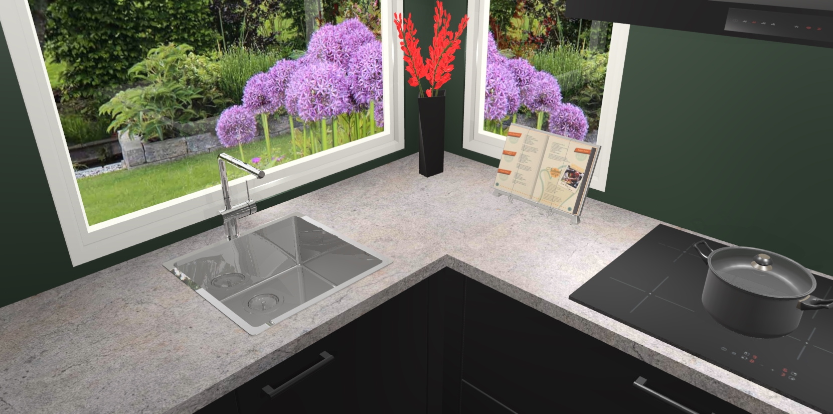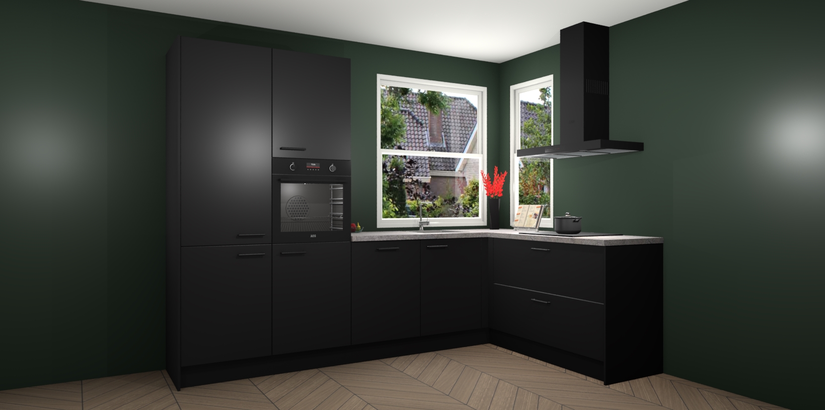 Het is tijd om halsoverkop verliefd te worden op uw droomkeuken, en de Zwarte keuken Kotor is precies wat u nodig heeft! Met een moderne, tijdloze constructie en een mix van prachtig design zal deze luxe hoekkeuken zeker opvallen. Maar laat de schoonheid u niet afleiden van de indrukwekkende functies - want onder dit alles schuilt een onovertroffen hoeveelheid lekkers!