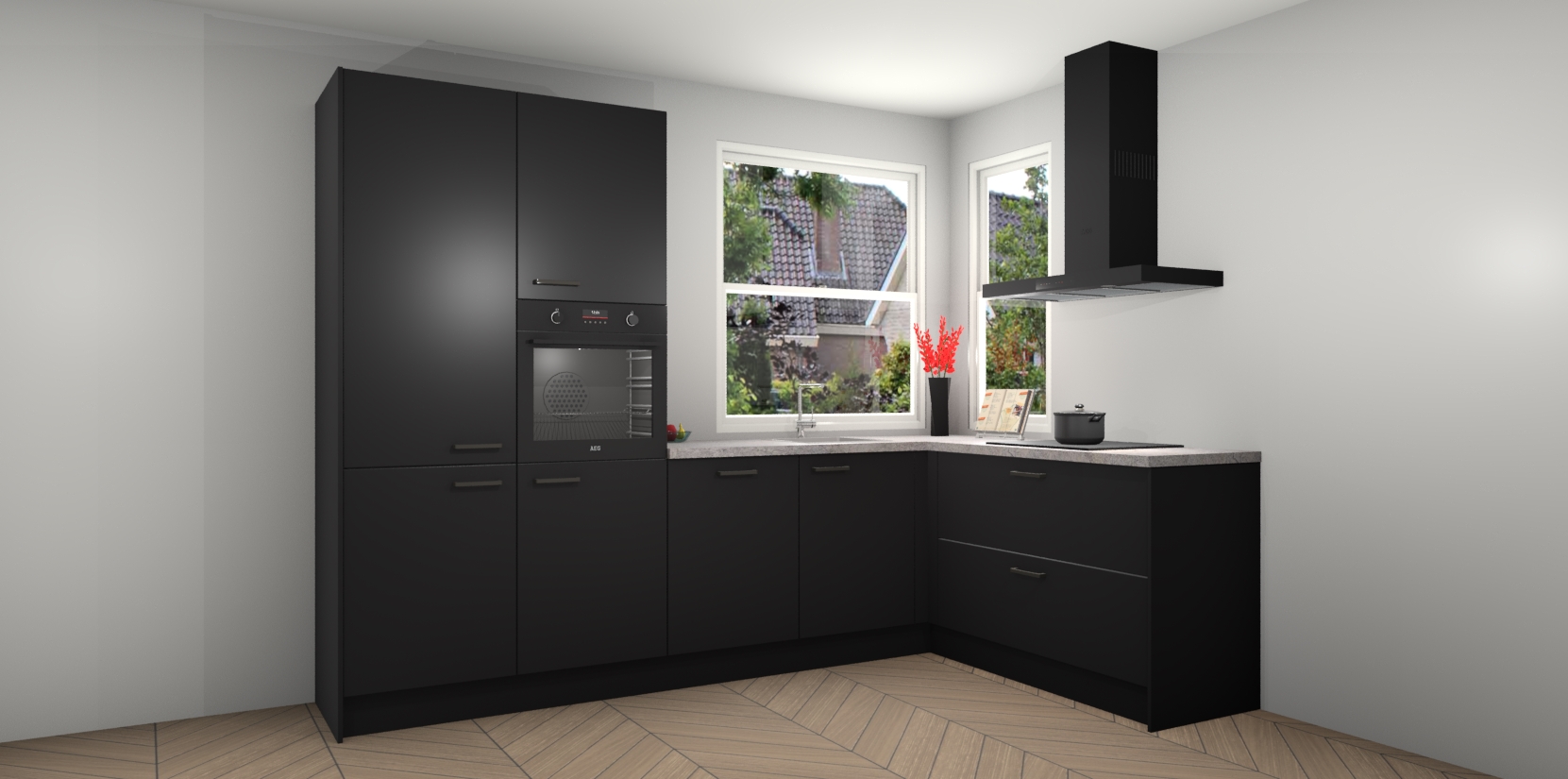 Elke Zwarte keuken Kotor wordt compleet geleverd met vijf inbouwapparaten, waaronder een oven, inductiekookplaat, afzuigkap, vaatwasser en koelkast. Sterker nog - indien gewenst kunt u deze apparaten na bestelling eenvoudig upgraden naar AEG! Extra functies zijn onder andere soft close deuren voor extra gemak, en elke kast wordt voor gemonteerd geleverd zodat u sneller van uw nieuwe keuken kunt genieten.