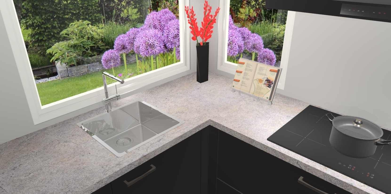 Het is tijd om halsoverkop verliefd te worden op uw droomkeuken, en de Zwarte keuken Kotor is precies wat u nodig heeft! Met een moderne, tijdloze constructie en een mix van prachtig design zal deze luxe hoekkeuken zeker opvallen. Maar laat de schoonheid u niet afleiden van de indrukwekkende functies - want onder dit alles schuilt een onovertroffen hoeveelheid lekkers!