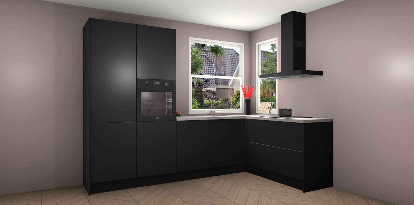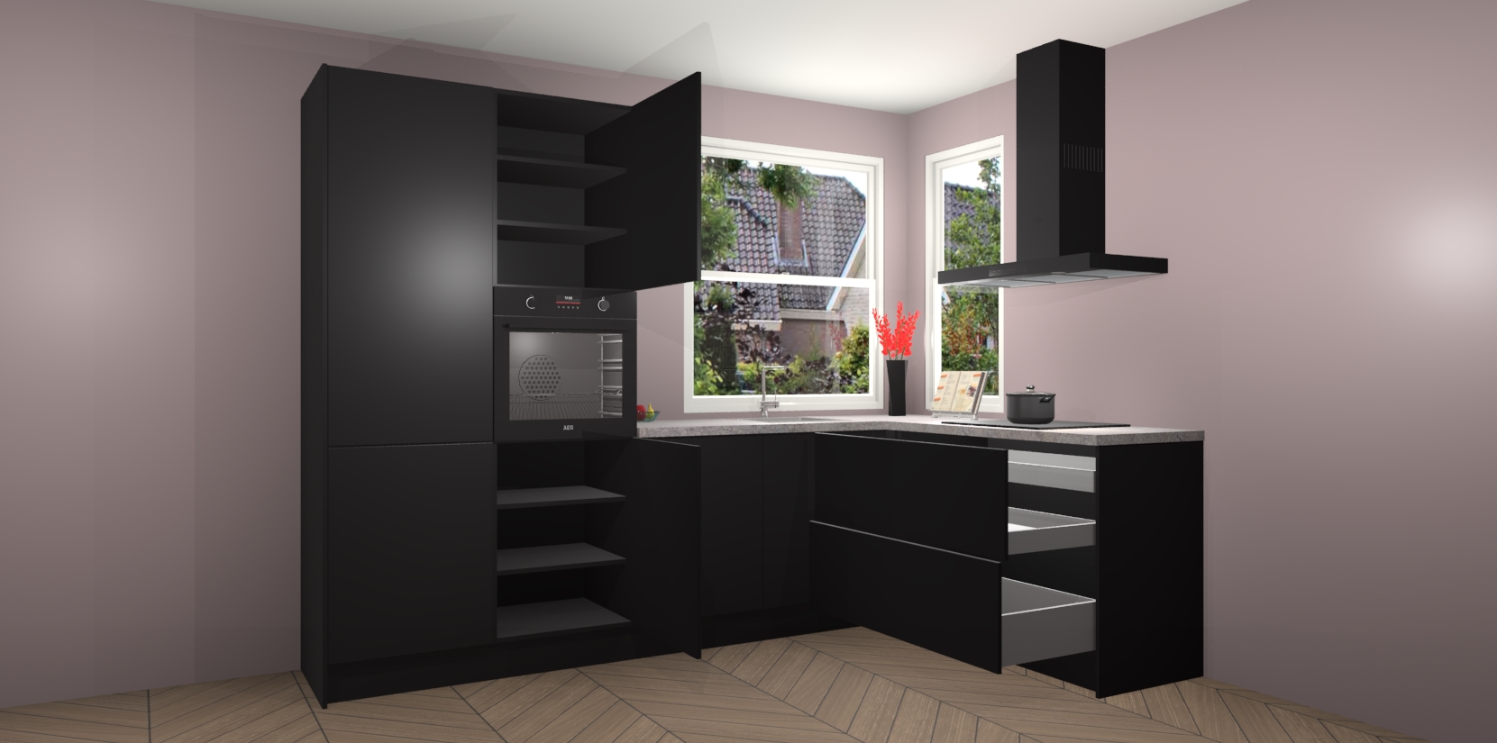 Elke Zwarte keuken Kotor wordt compleet geleverd met vijf inbouwapparaten, waaronder een oven, inductiekookplaat, afzuigkap, vaatwasser en koelkast. Sterker nog - indien gewenst kunt u deze apparaten na bestelling eenvoudig upgraden naar AEG! Extra functies zijn onder andere soft close deuren voor extra gemak, en elke kast wordt voor gemonteerd geleverd zodat u sneller van uw nieuwe keuken kunt genieten.