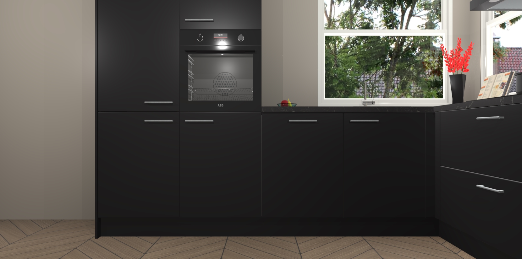 Elke Zwarte keuken Kotor wordt compleet geleverd met vijf inbouwapparaten, waaronder een oven, inductiekookplaat, afzuigkap, vaatwasser en koelkast. Sterker nog - indien gewenst kunt u deze apparaten na bestelling eenvoudig upgraden naar AEG! Extra functies zijn onder andere soft close deuren voor extra gemak, en elke kast wordt voor gemonteerd geleverd zodat u sneller van uw nieuwe keuken kunt genieten.