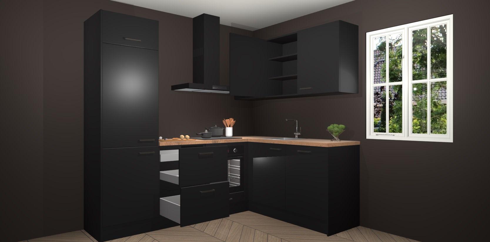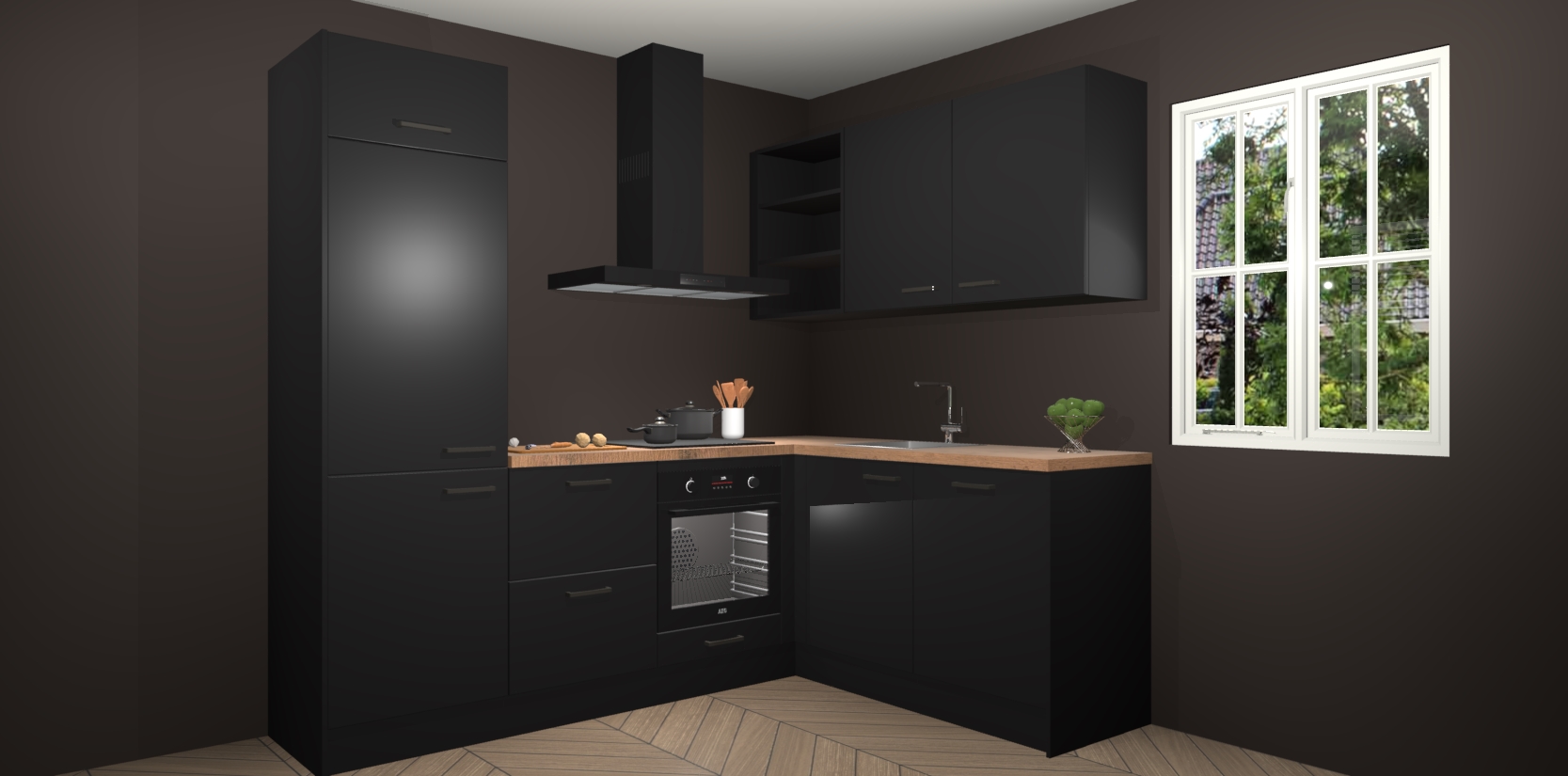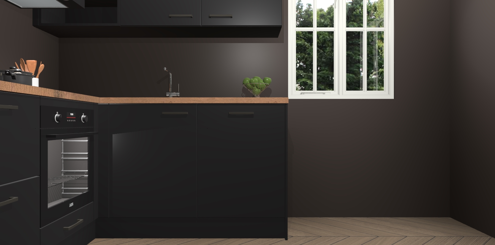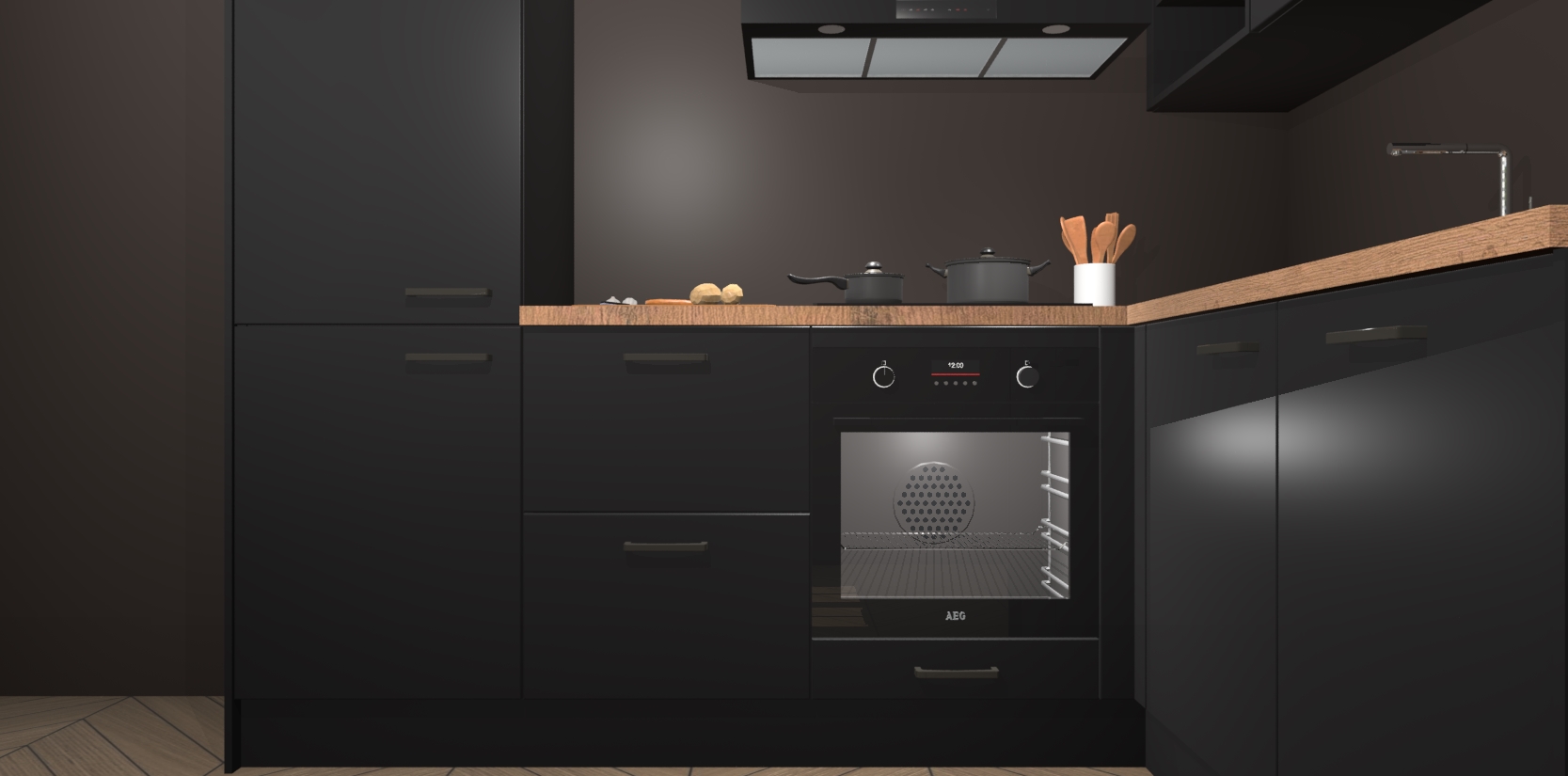 Dit model biedt u voldoende opbergruimte en vijf ingebouwde apparaten: een oven, inductiekookplaat, afzuigkap, vaatwasser en koelkast. Deze apparaten kunnen gemakkelijk worden geüpgrade naar AEG nadat u besteld heeft. De verschillende laden en kastjes bevatten softclose-deuren waardoor ze gezellig dichtvallen met een geruststellend helemaal geruisloos geluid. En dat is nog niet alles! We garanderen ook dat de prijs altijd laag blijft - dus haal nu uw Zwarte keuken Krakau terwijl het kan.