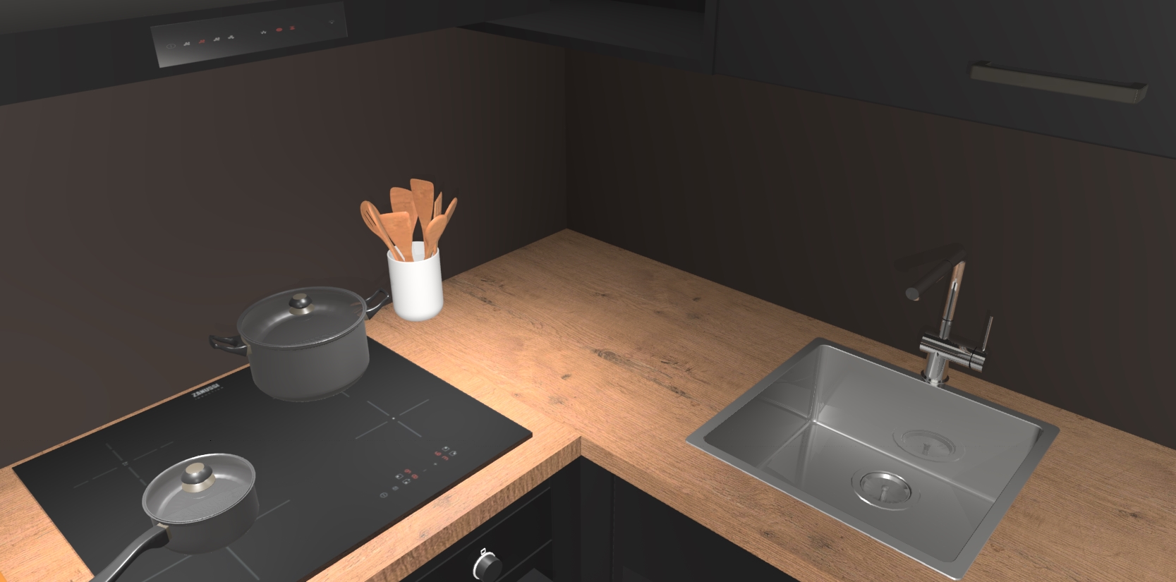 - Uitsparing van kookplaat, spoelbak en kraan dient u zelf te verzorgen.