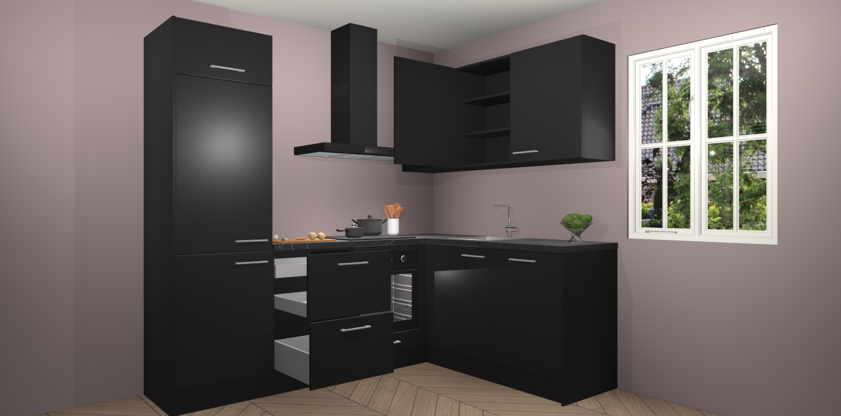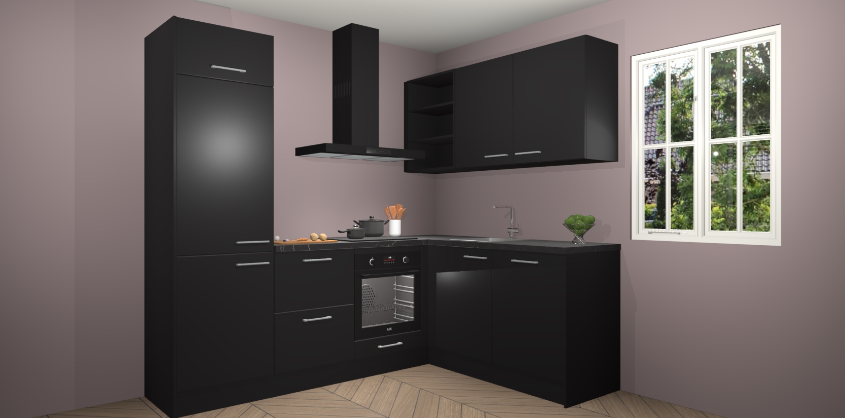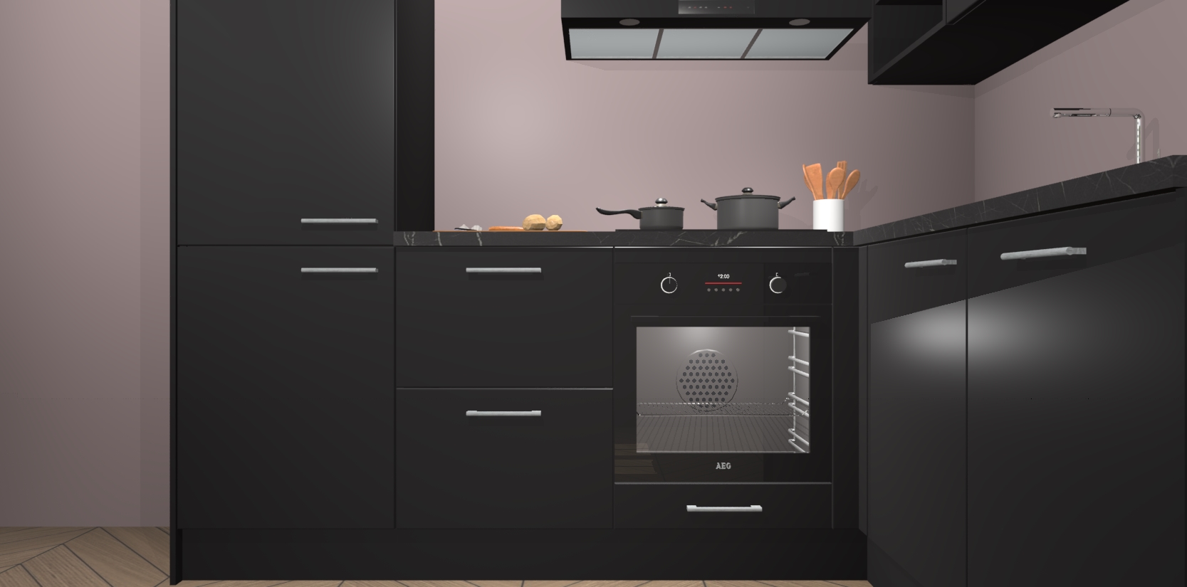 Dit model biedt u voldoende opbergruimte en vijf ingebouwde apparaten: een oven, inductiekookplaat, afzuigkap, vaatwasser en koelkast. Deze apparaten kunnen gemakkelijk worden geüpgrade naar AEG nadat u besteld heeft. De verschillende laden en kastjes bevatten softclose-deuren waardoor ze gezellig dichtvallen met een geruststellend helemaal geruisloos geluid. En dat is nog niet alles! We garanderen ook dat de prijs altijd laag blijft - dus haal nu uw Zwarte keuken Krakau terwijl het kan.