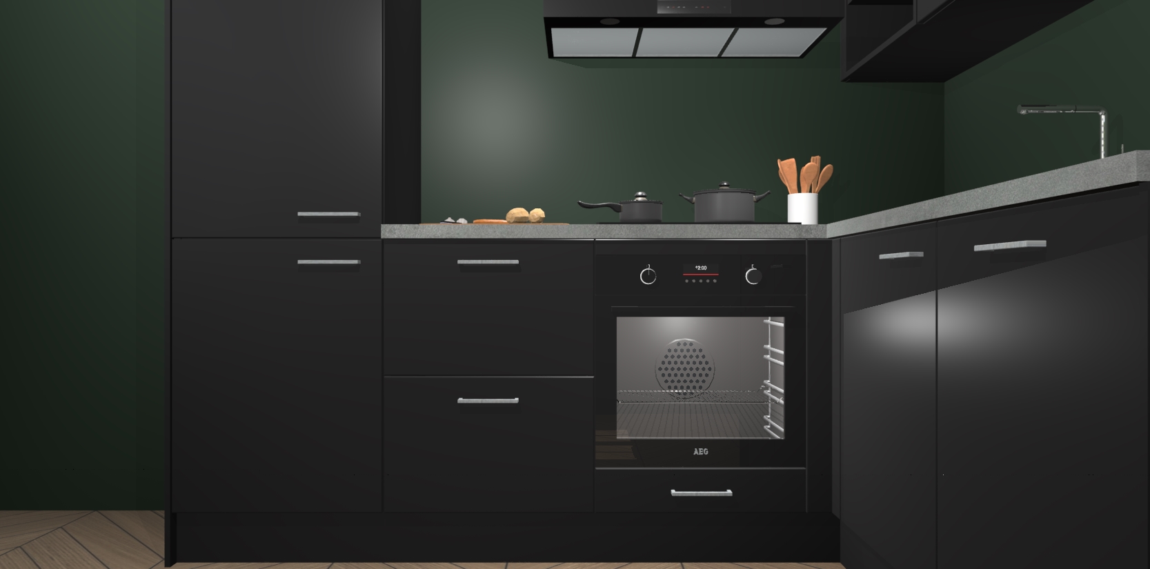 Dit model biedt u voldoende opbergruimte en vijf ingebouwde apparaten: een oven, inductiekookplaat, afzuigkap, vaatwasser en koelkast. Deze apparaten kunnen gemakkelijk worden geüpgrade naar AEG nadat u besteld heeft. De verschillende laden en kastjes bevatten softclose-deuren waardoor ze gezellig dichtvallen met een geruststellend helemaal geruisloos geluid. En dat is nog niet alles! We garanderen ook dat de prijs altijd laag blijft - dus haal nu uw Zwarte keuken Krakau terwijl het kan.