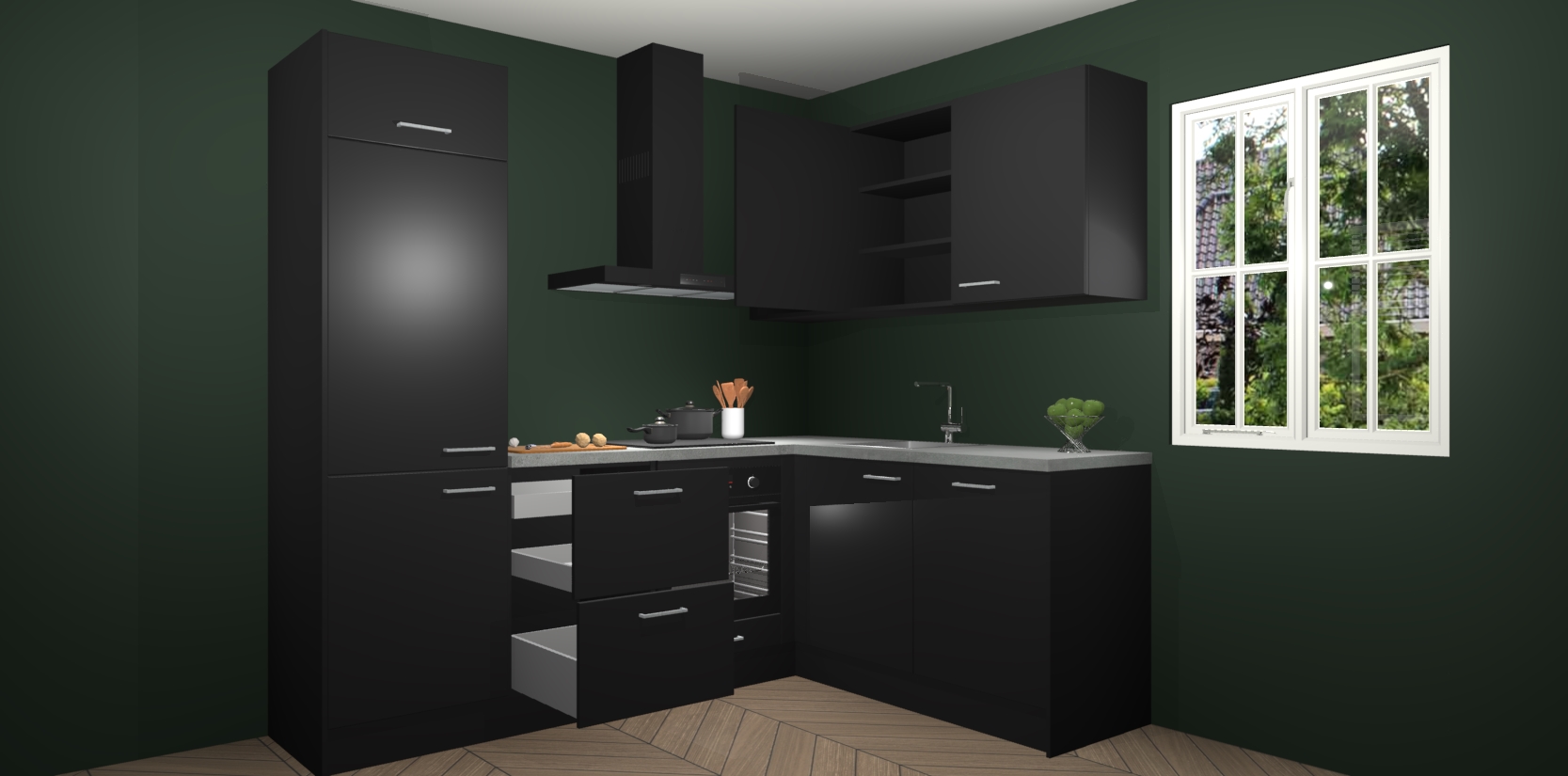 Bestellen was nog nooit zo makkelijk en we leveren met slechts 7 weken; zodra de keuken arriveert staan de kasten voor gemonteerd klaar om er alles aan te doen dat u hem gemakkelijk zelf kunt installeren! Eén ding is zeker: met de Zwarte keuken Krakau slaagt u erin modischer, modernere keukens uit te rusten die tientallen jaren meegaan! Haal snel uw Zwarte keuken Krakau - of u nu net begint of al 'levenservaring' hebt in de keukendroomloopbaan - want dit topmodel van onze collectie wilt u absoluut niet missen.
