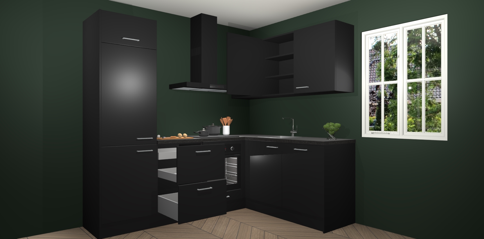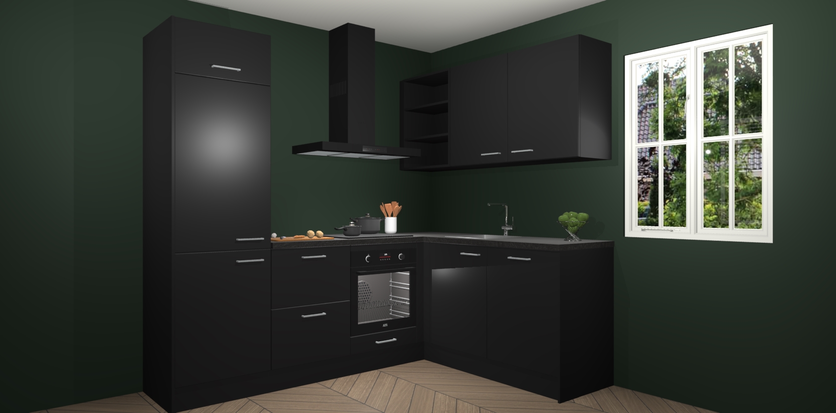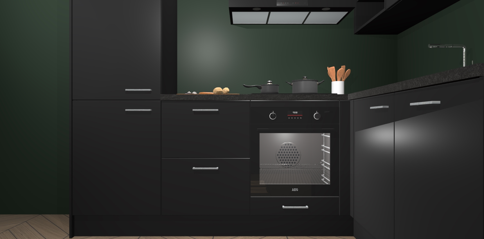Dit model biedt u voldoende opbergruimte en vijf ingebouwde apparaten: een oven, inductiekookplaat, afzuigkap, vaatwasser en koelkast. Deze apparaten kunnen gemakkelijk worden geüpgrade naar AEG nadat u besteld heeft. De verschillende laden en kastjes bevatten softclose-deuren waardoor ze gezellig dichtvallen met een geruststellend helemaal geruisloos geluid. En dat is nog niet alles! We garanderen ook dat de prijs altijd laag blijft - dus haal nu uw Zwarte keuken Krakau terwijl het kan.