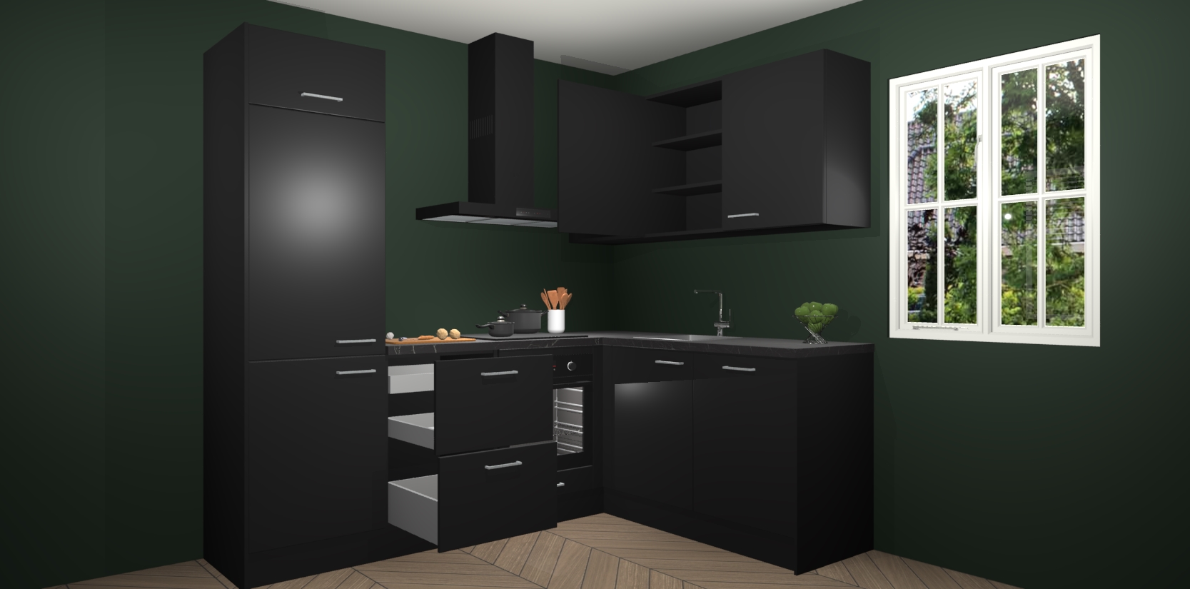Bestellen was nog nooit zo makkelijk en we leveren met slechts 7 weken; zodra de keuken arriveert staan de kasten voor gemonteerd klaar om er alles aan te doen dat u hem gemakkelijk zelf kunt installeren! Eén ding is zeker: met de Zwarte keuken Krakau slaagt u erin modischer, modernere keukens uit te rusten die tientallen jaren meegaan! Haal snel uw Zwarte keuken Krakau - of u nu net begint of al 'levenservaring' hebt in de keukendroomloopbaan - want dit topmodel van onze collectie wilt u absoluut niet missen.