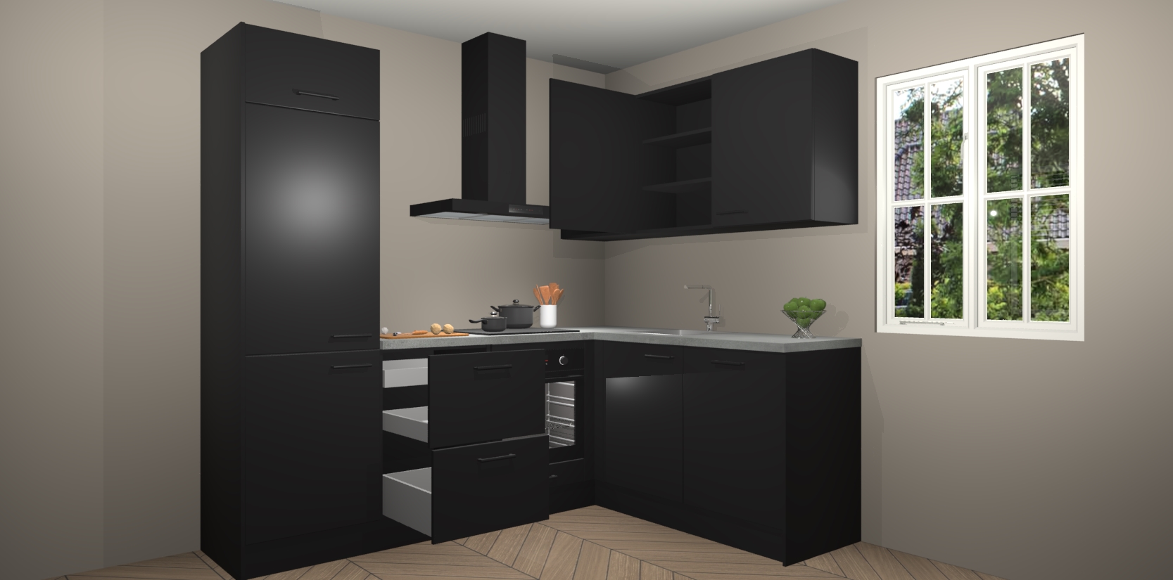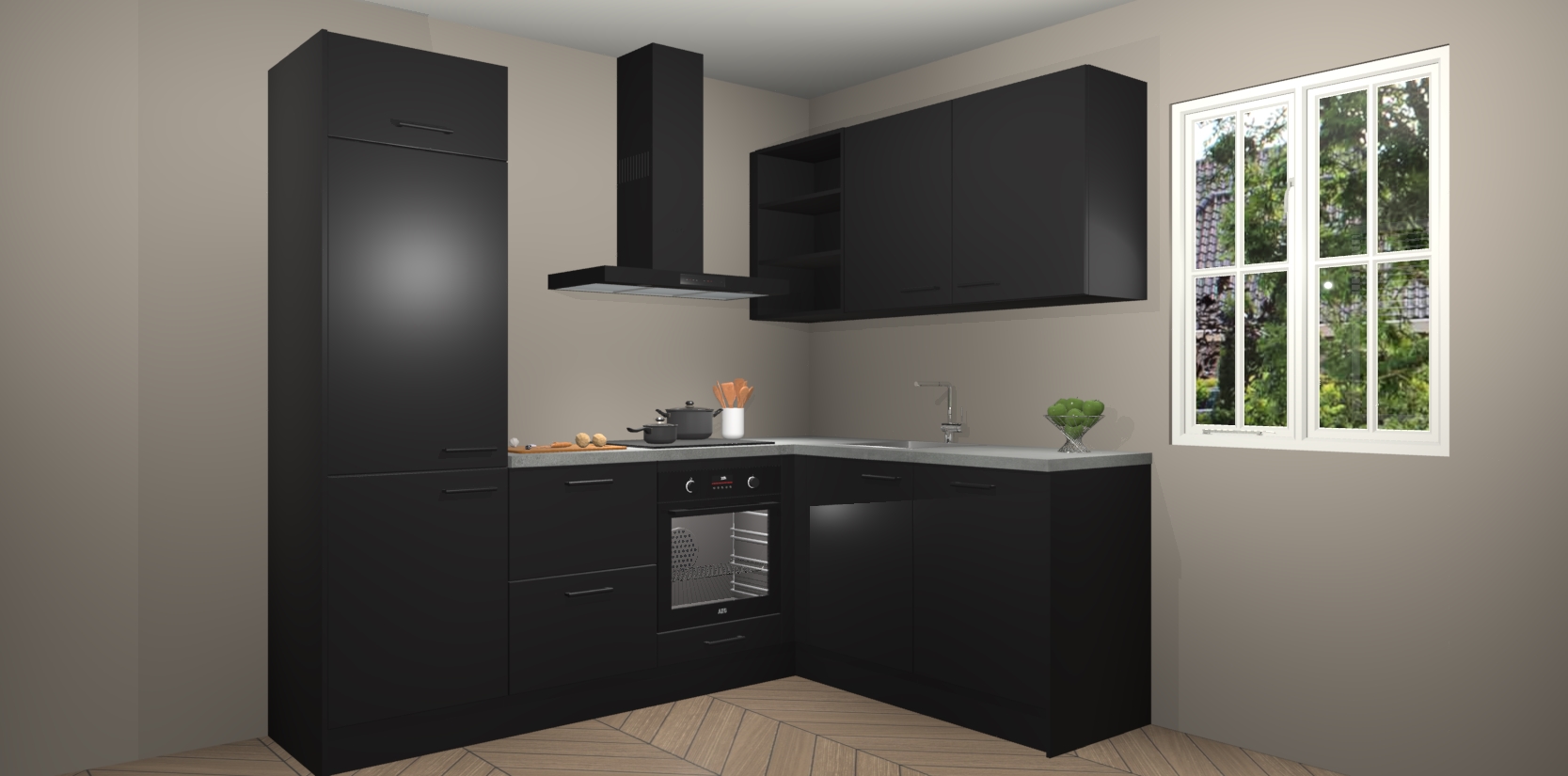 Dit model biedt u voldoende opbergruimte en vijf ingebouwde apparaten: een oven, inductiekookplaat, afzuigkap, vaatwasser en koelkast. Deze apparaten kunnen gemakkelijk worden geüpgrade naar AEG nadat u besteld heeft. De verschillende laden en kastjes bevatten softclose-deuren waardoor ze gezellig dichtvallen met een geruststellend helemaal geruisloos geluid. En dat is nog niet alles! We garanderen ook dat de prijs altijd laag blijft - dus haal nu uw Zwarte keuken Krakau terwijl het kan.